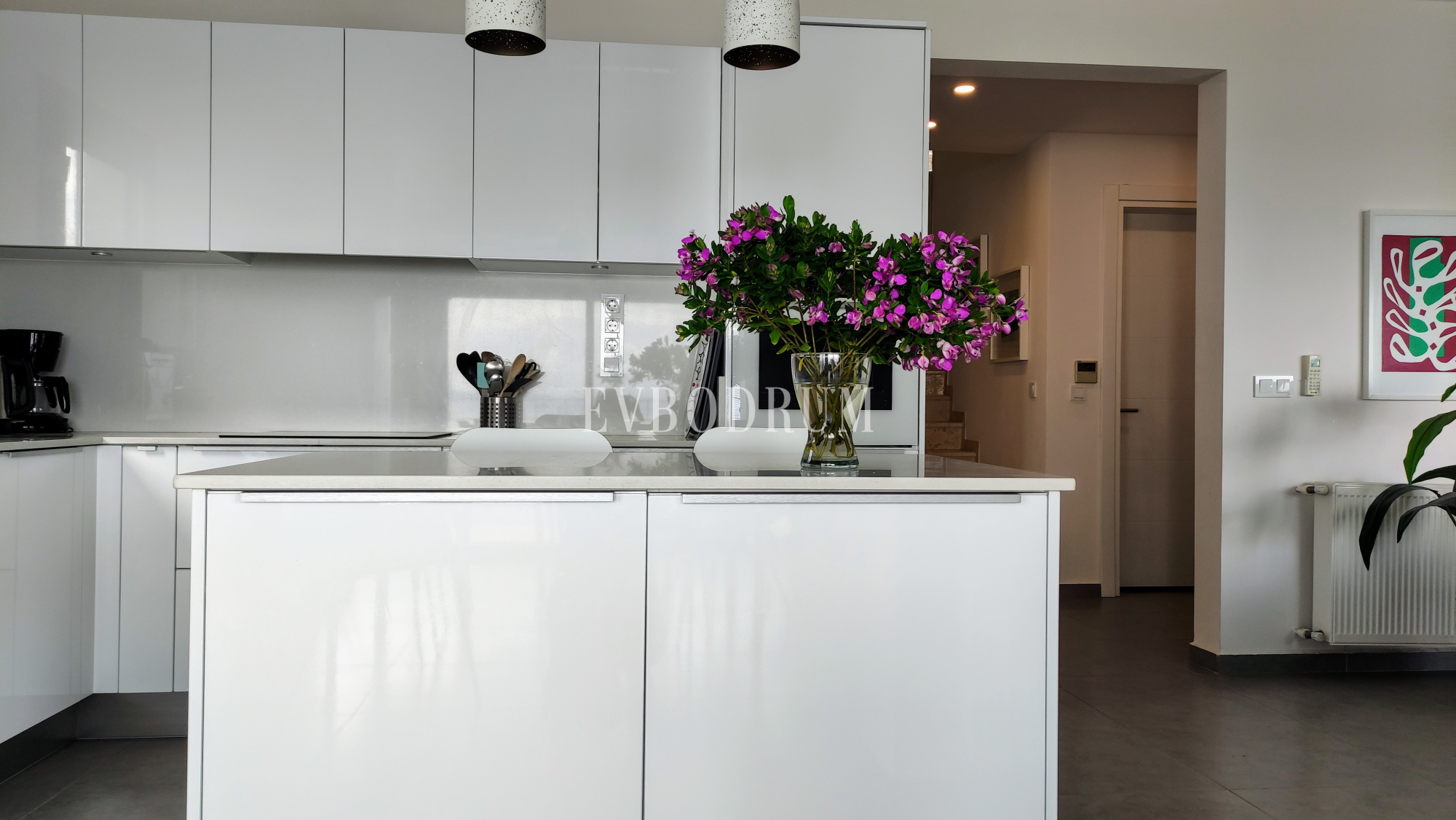 Zevkli ve modern bir şekilde döşenmiş olup, üçü ebeveyn banyolu olmak üzere toplam dört yatak odasına ve ayrıca bir misafir tuvaletine sahiptir. Oturma odası kapalı bir terasa açılmaktadır.