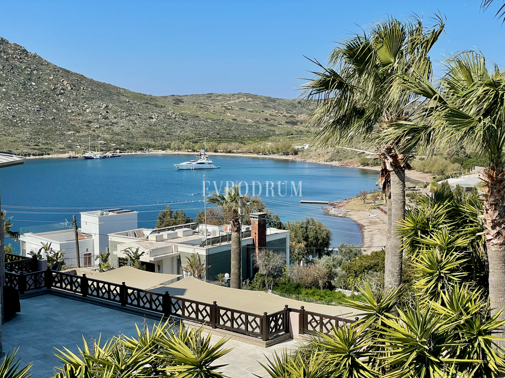 Evin en keyifli noktalarından biri olan çatı terası Yalıkavak körfezinin muhteşem gün batımı manzarasına sahiptir.