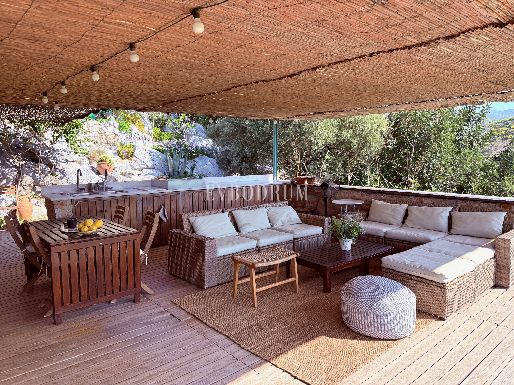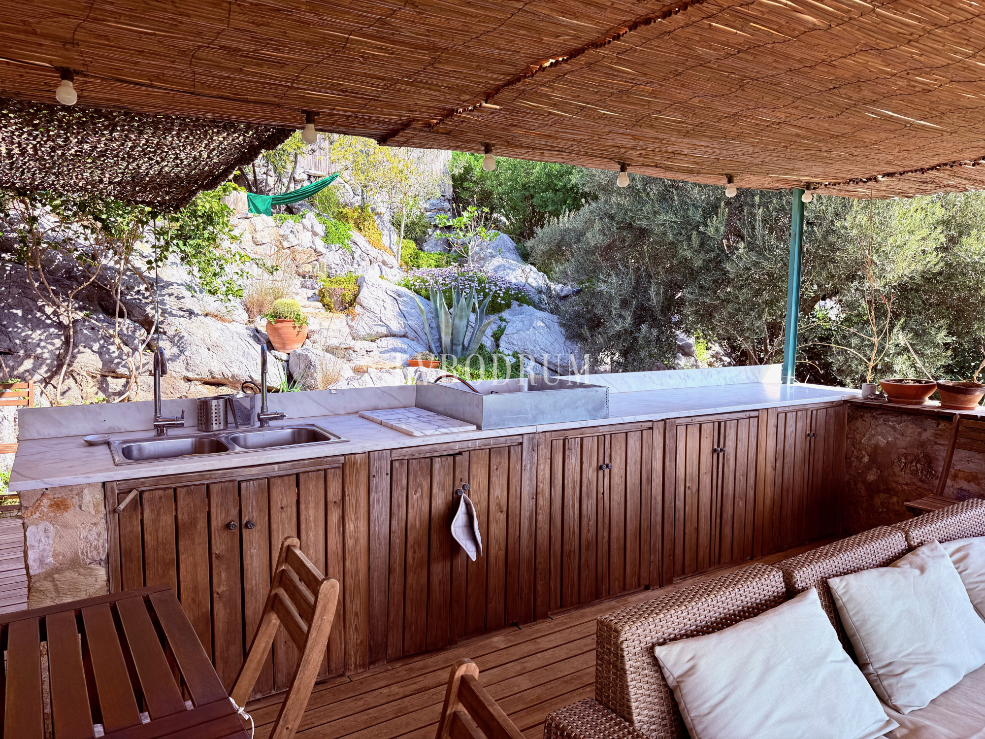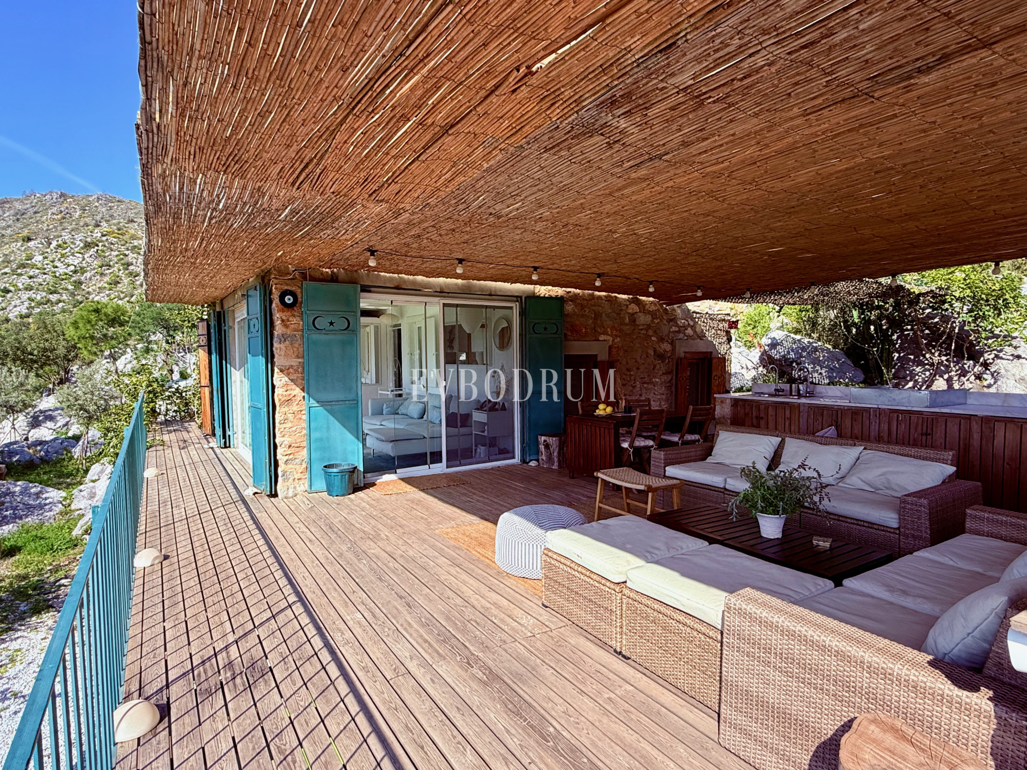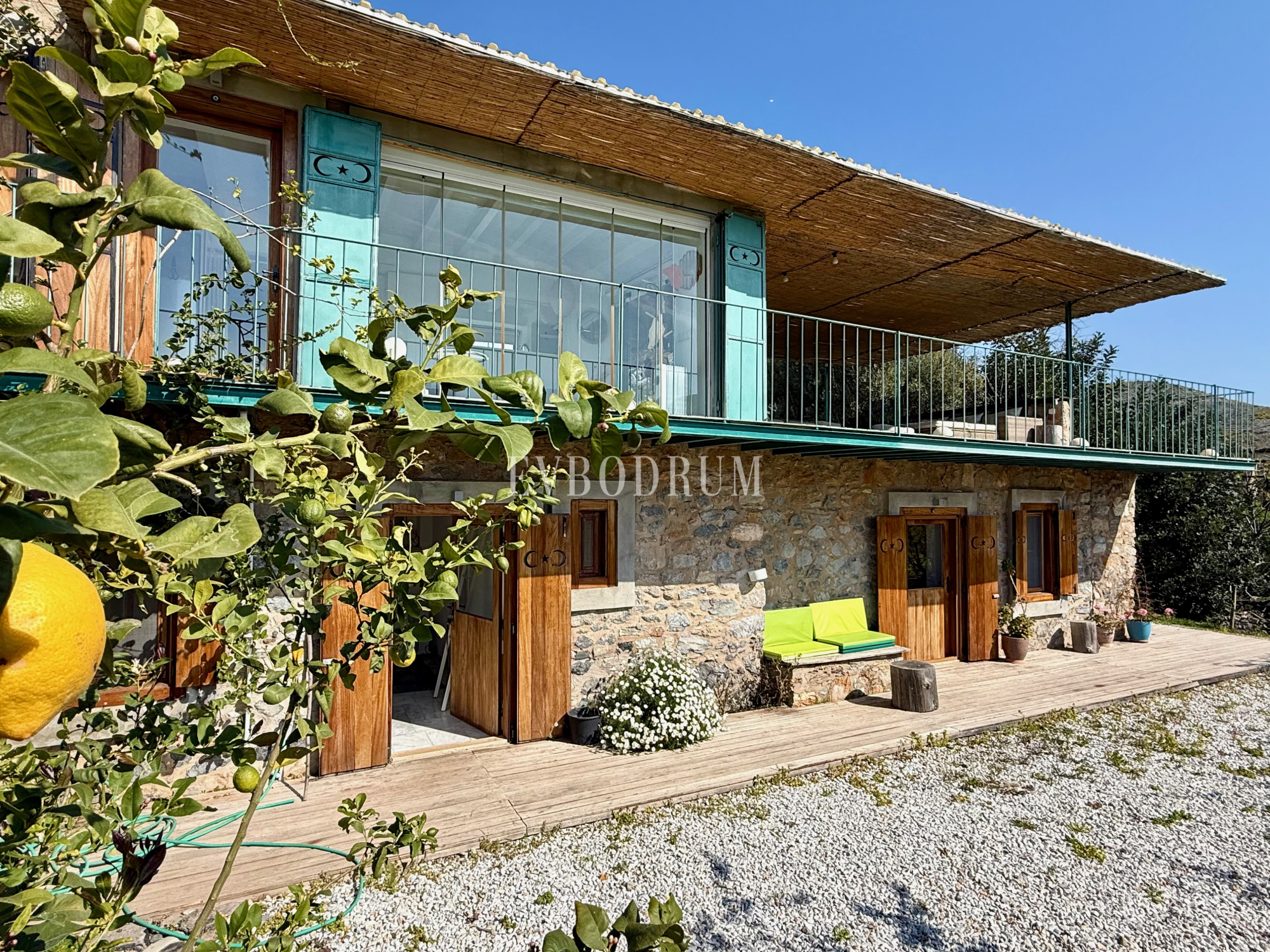 Çökertme’de denize yürüme mesafesinde (1,6 km uzaklıkta), 14.500 m2 çitlerle çevrili arazi içerisinde yer alan bu taş ev, ünlü bir mimar tarafından aslına sadık kalınarak renove edilmiştir. Doğal kaya oluşumlarının sunduğu özgün oturma alanlarıyla çevrili mülk, geniş ve ferah bir yaşam alanı sunmaktadır.