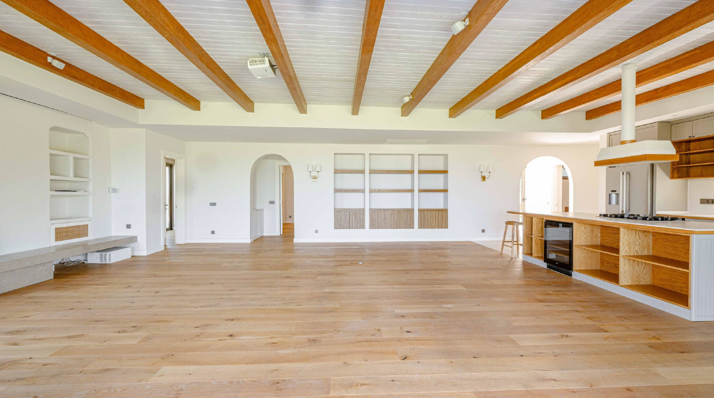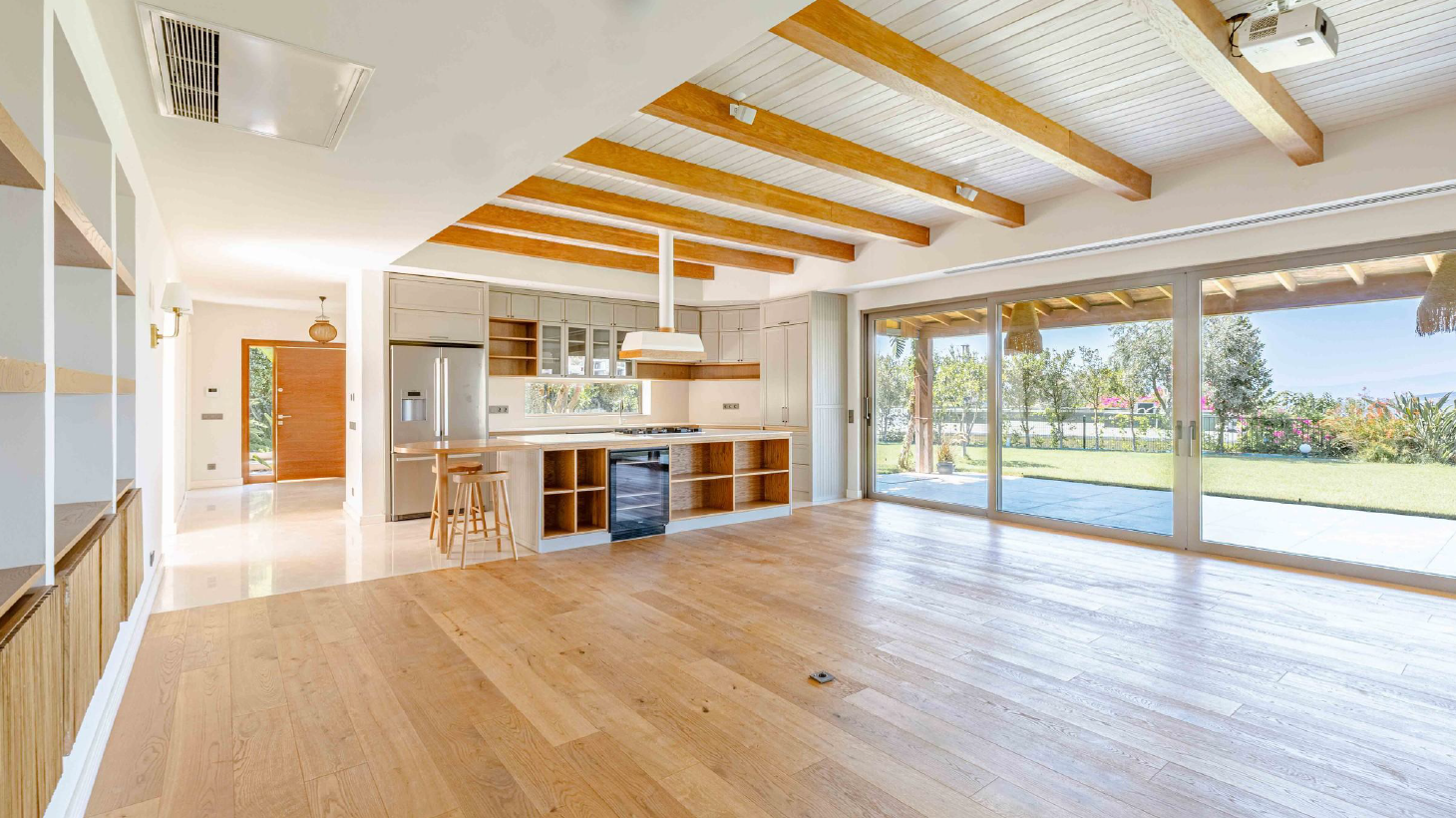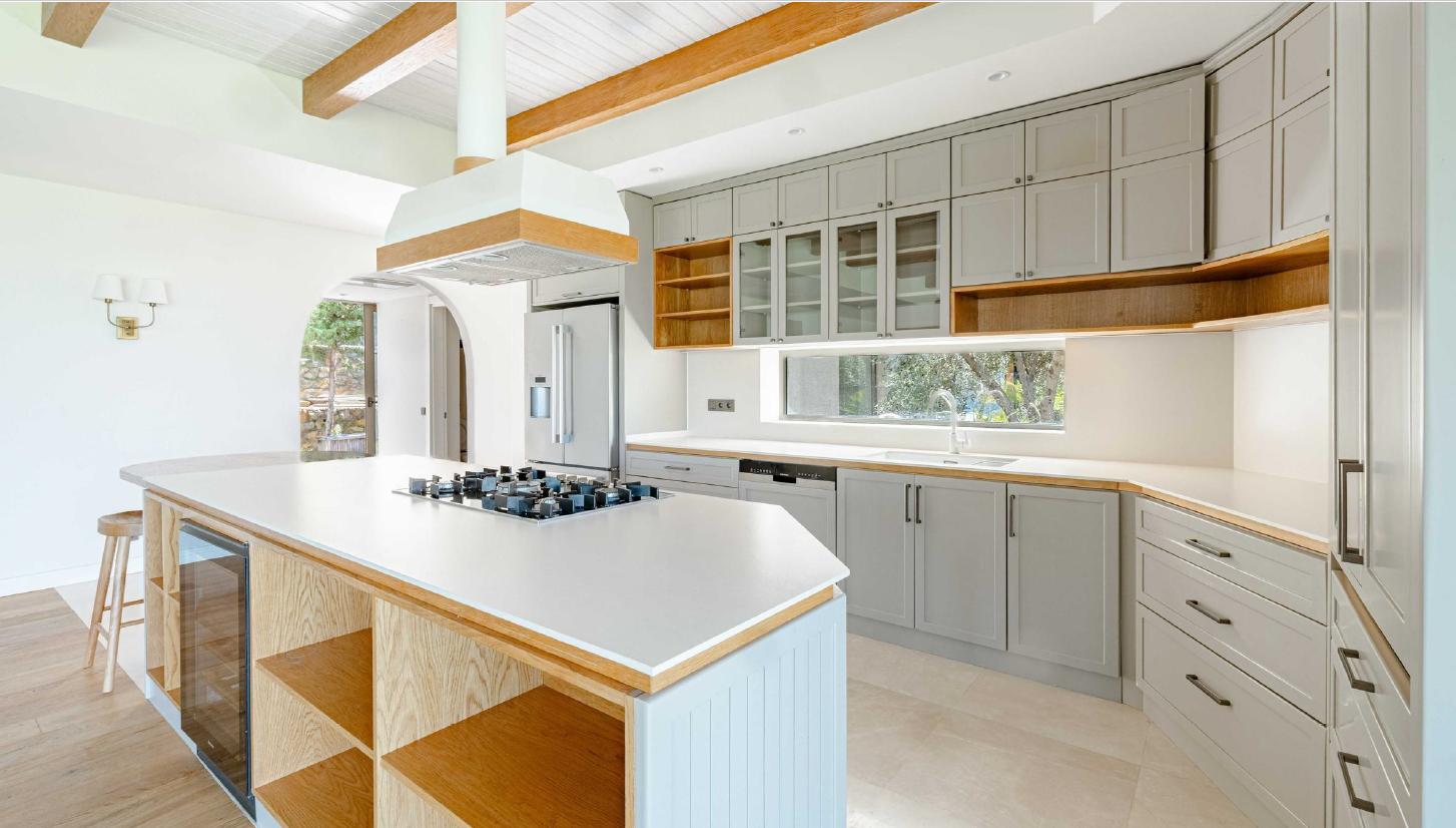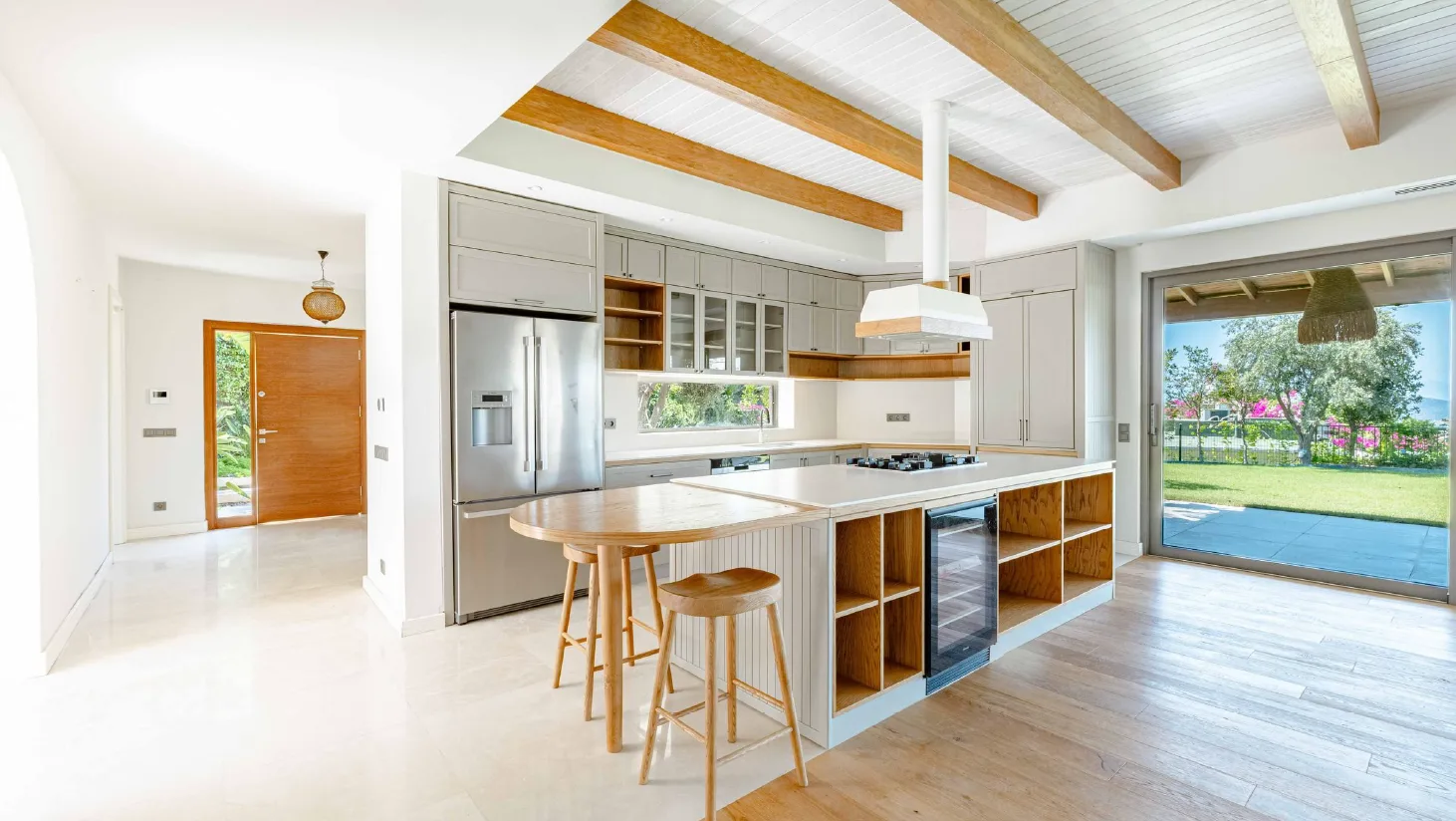 • Miele ve Bosch marka beyaz eşyalarla donatılmış, şarap dolabı da dahil olmak üzere eksiksiz açık plan mutfak