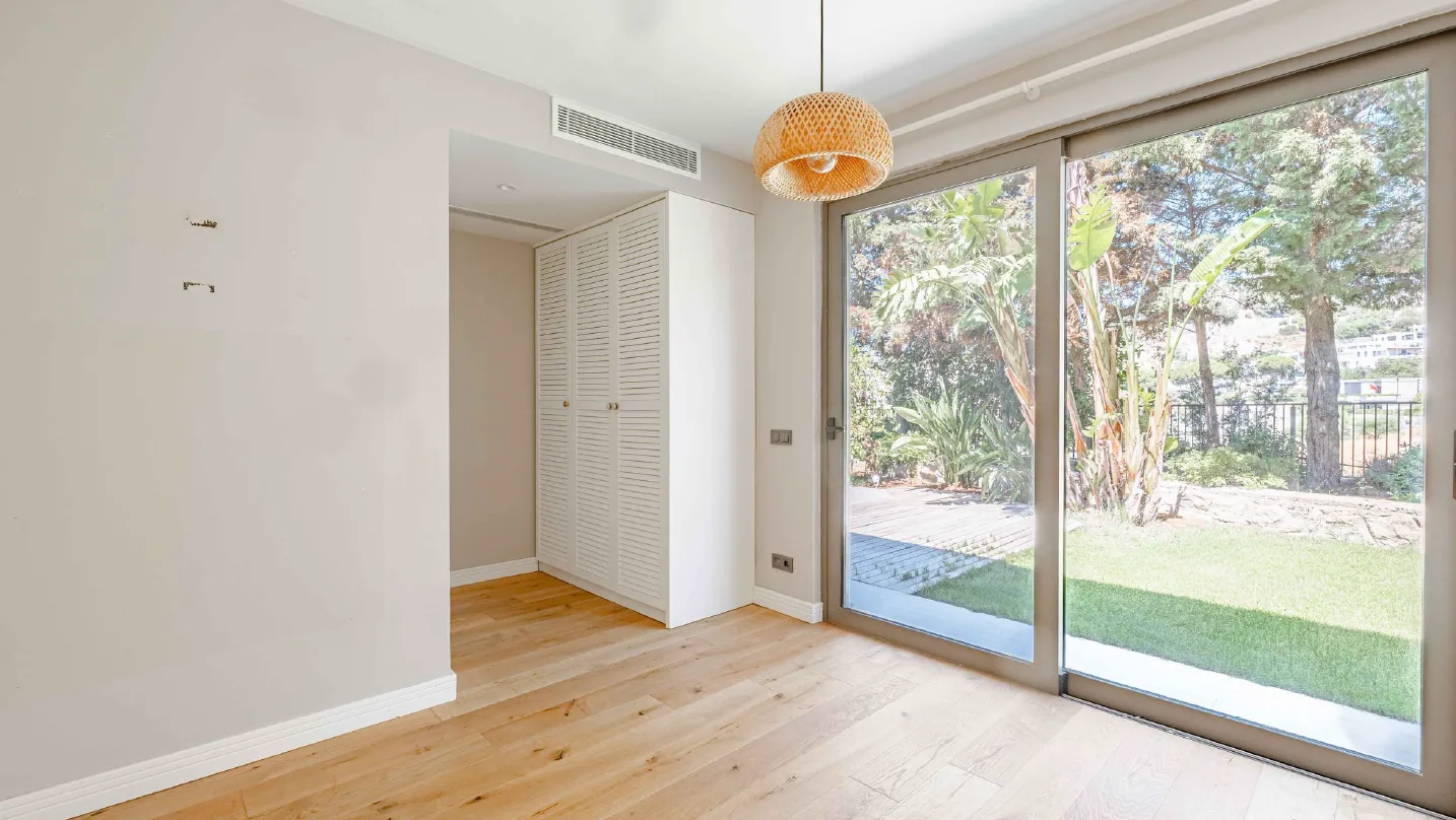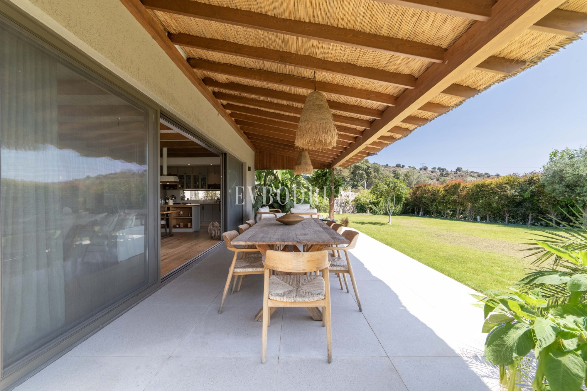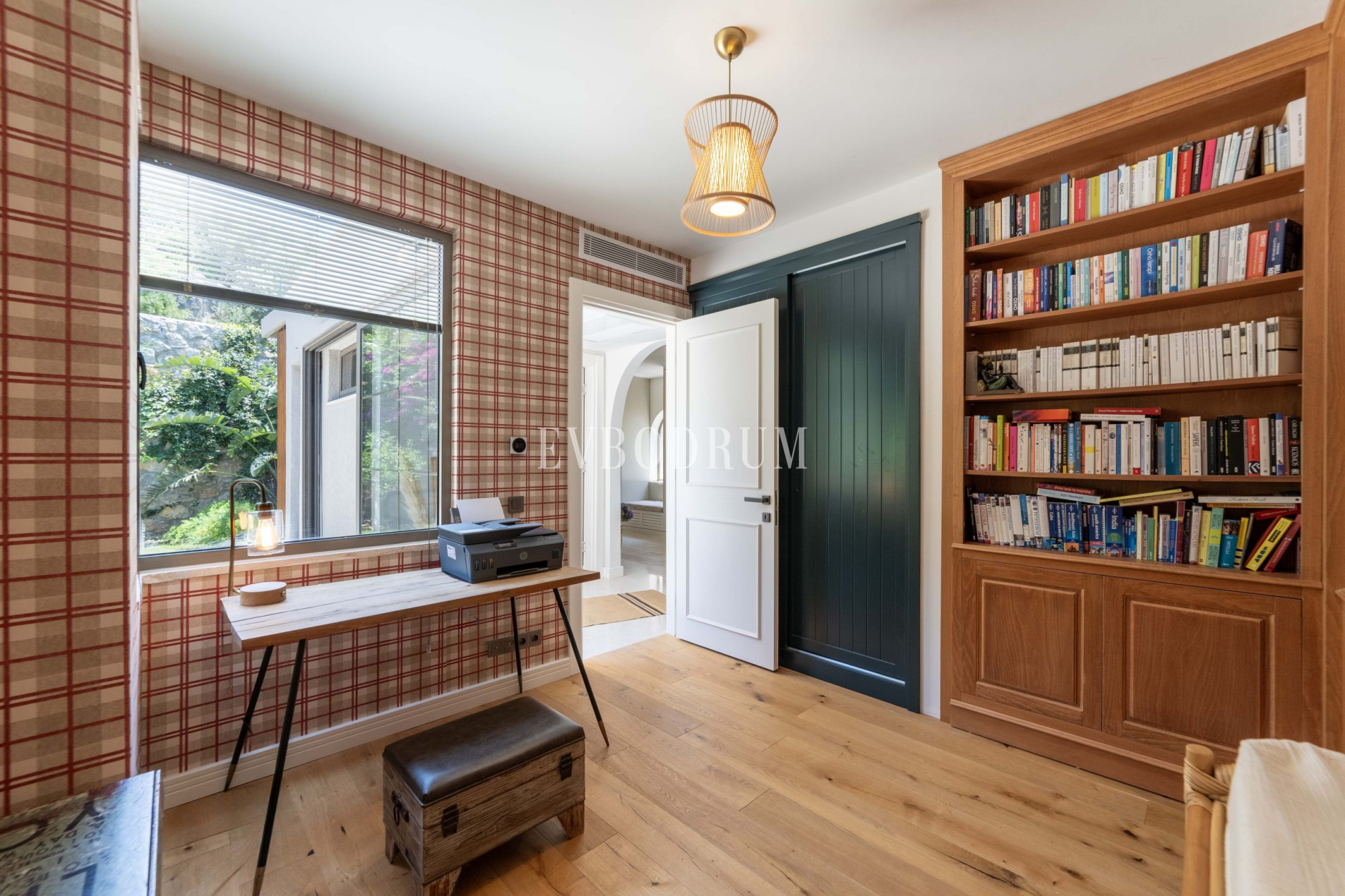 Kapalı ve büyük bahçe özenle peyzajlanmıştır, çeşitli teraslara ve otomatik sulama sistemine sahiptir. Eve ait 2 özel otopark alanı mevcuttur.