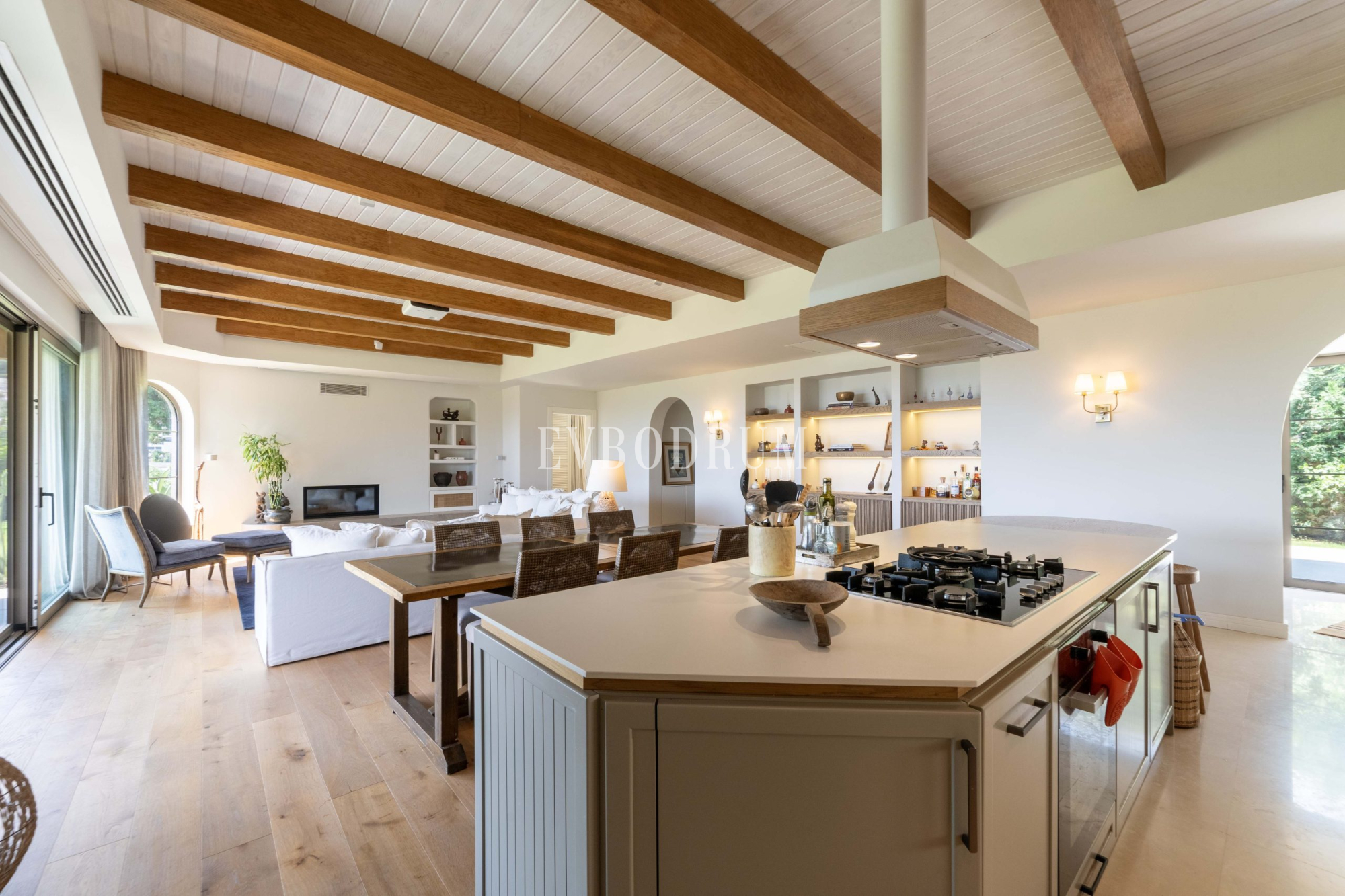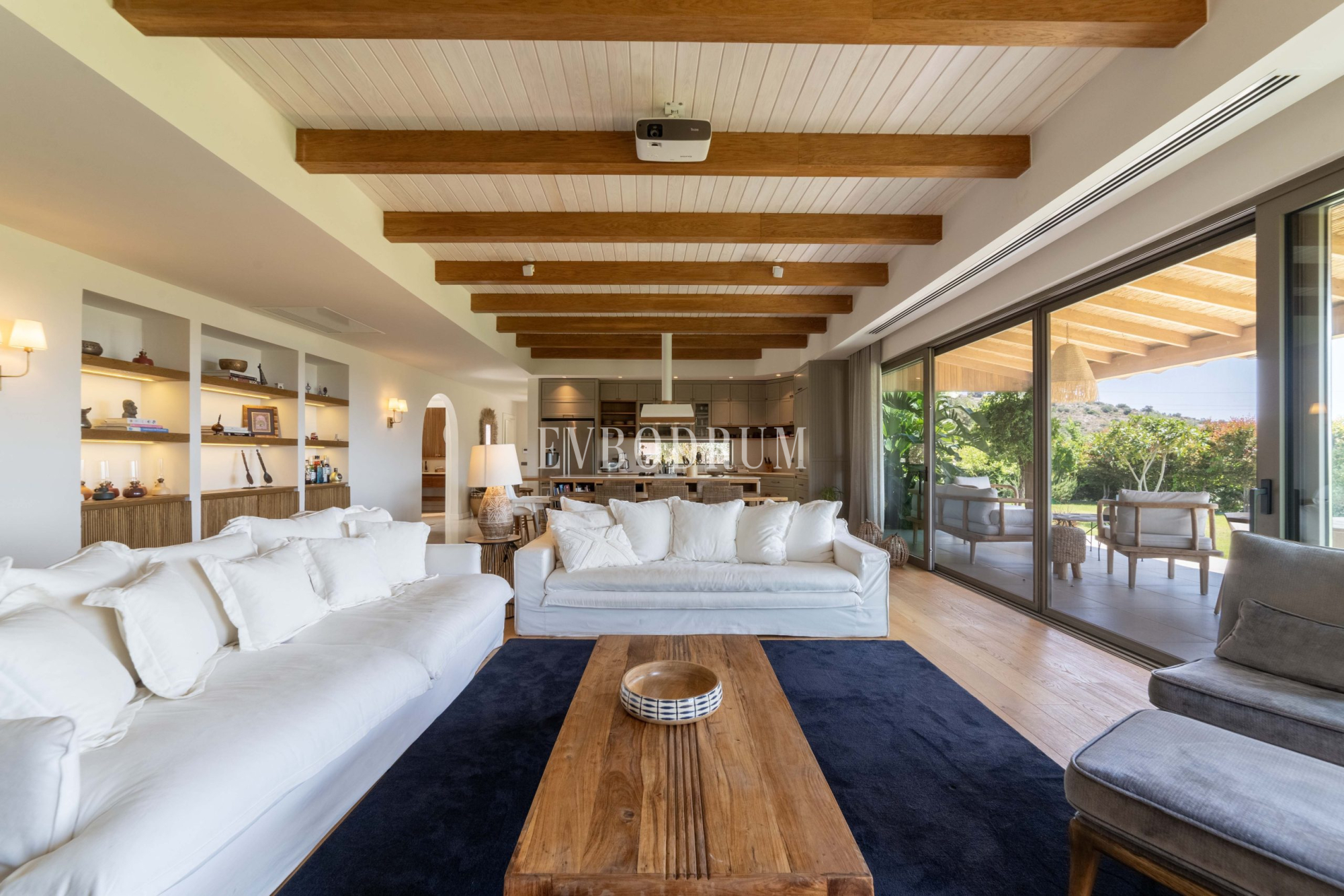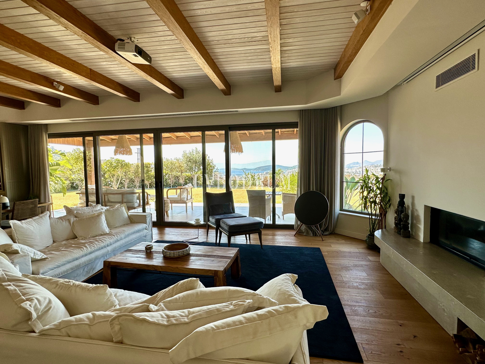 • Zeminden tavana uzanan pencerelere sahip, manzarayı kucaklayan çok geniş bir oturma odası; gölgeli, büyük terasa açılmaktadır
