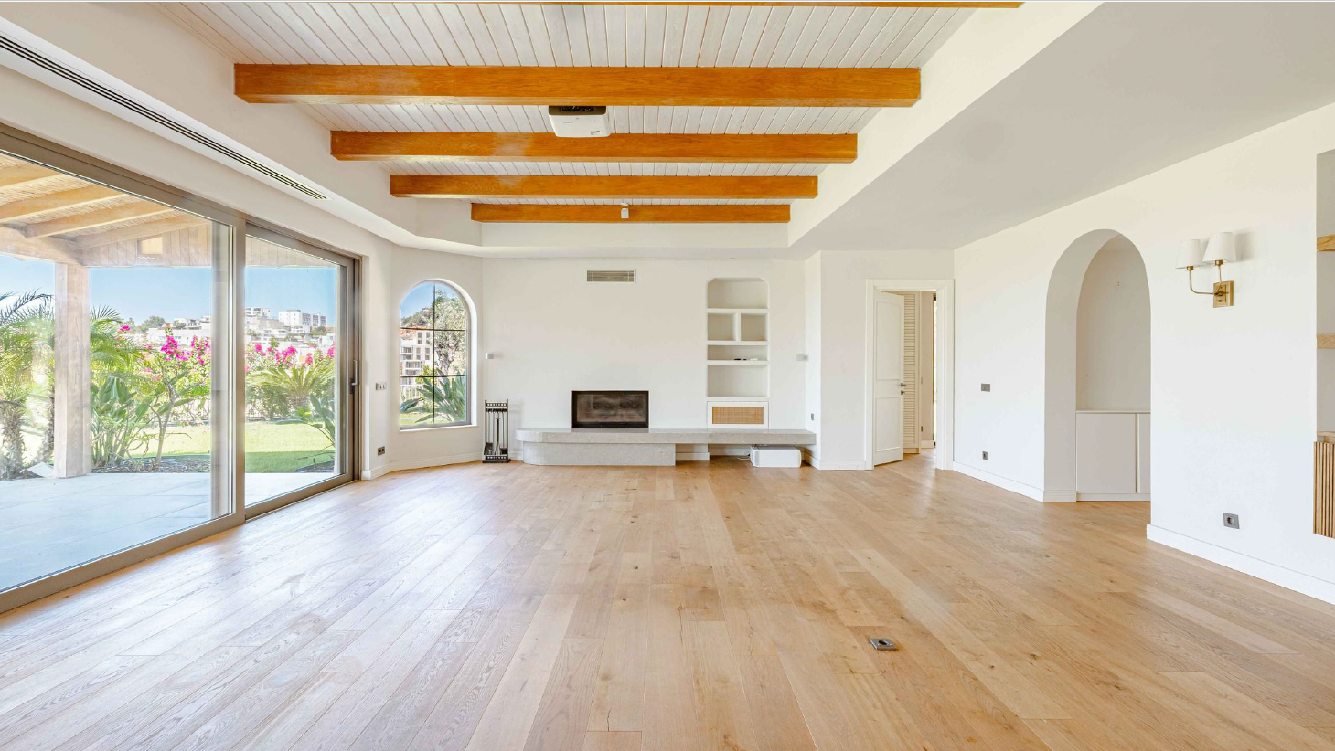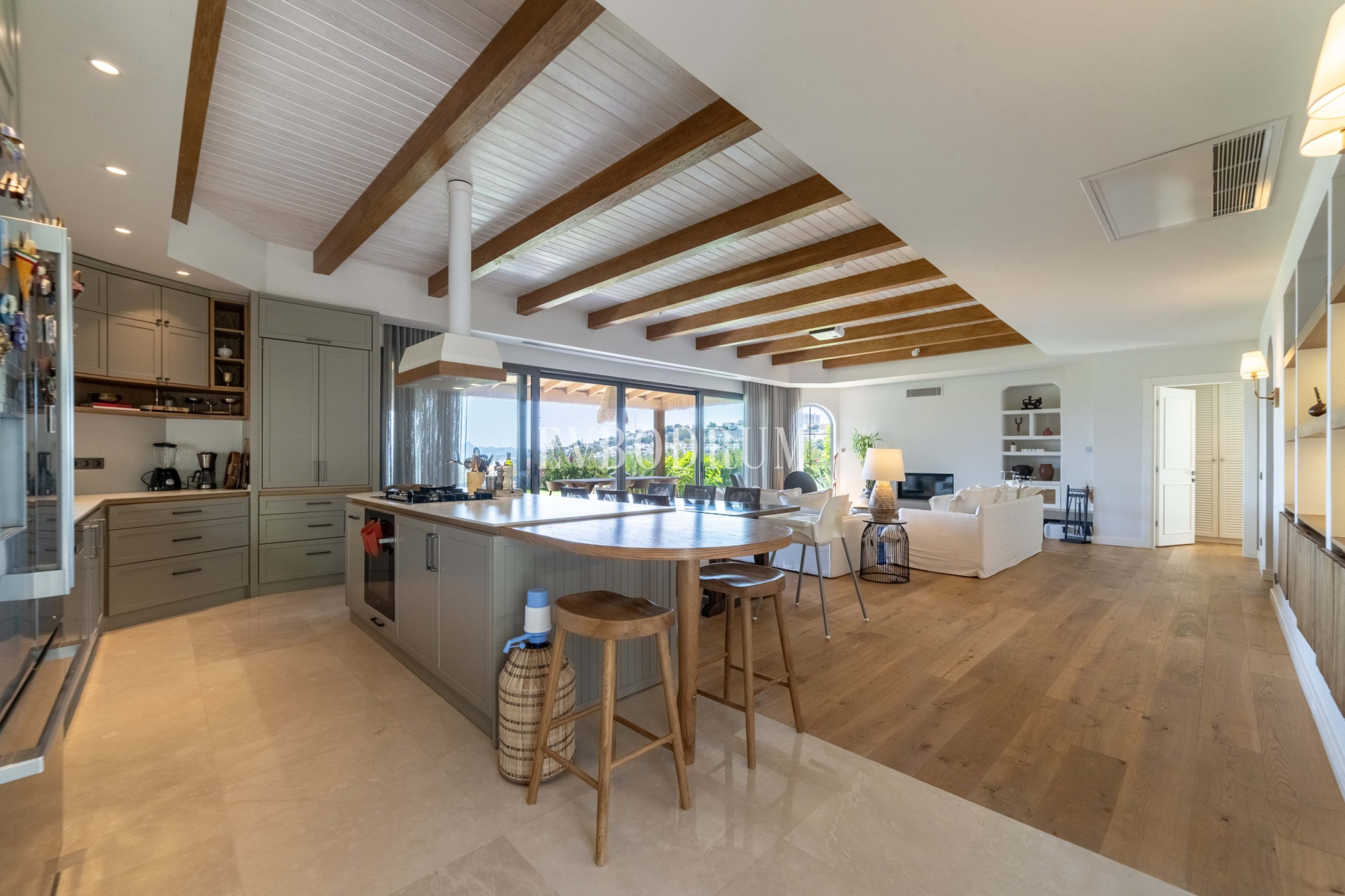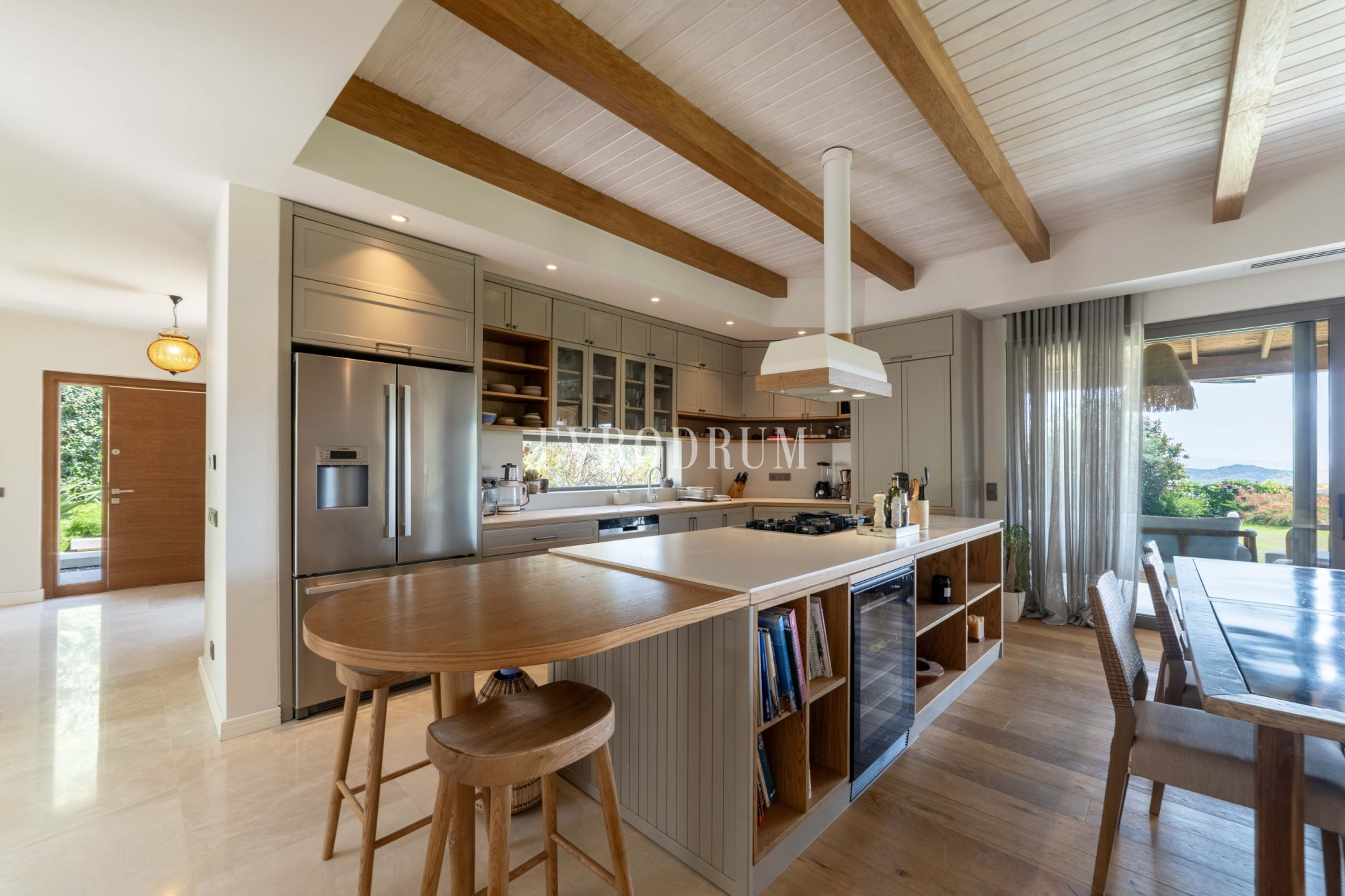 • Zeminden tavana uzanan pencerelere sahip, manzarayı kucaklayan çok geniş bir oturma odası; gölgeli, büyük terasa açılmaktadır