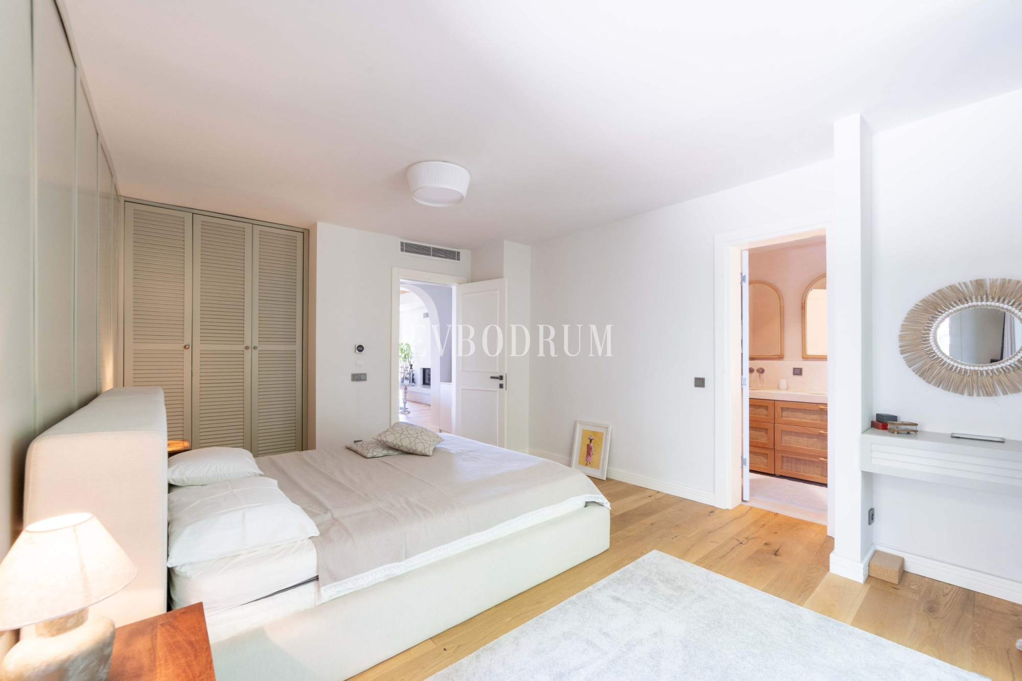 Bu mülk, Bodrum’da bir tepe üzerinde konumlanmış, merkezi ve Bodrum Koyu'nu gören güzel bir sitede yer almaktadır.