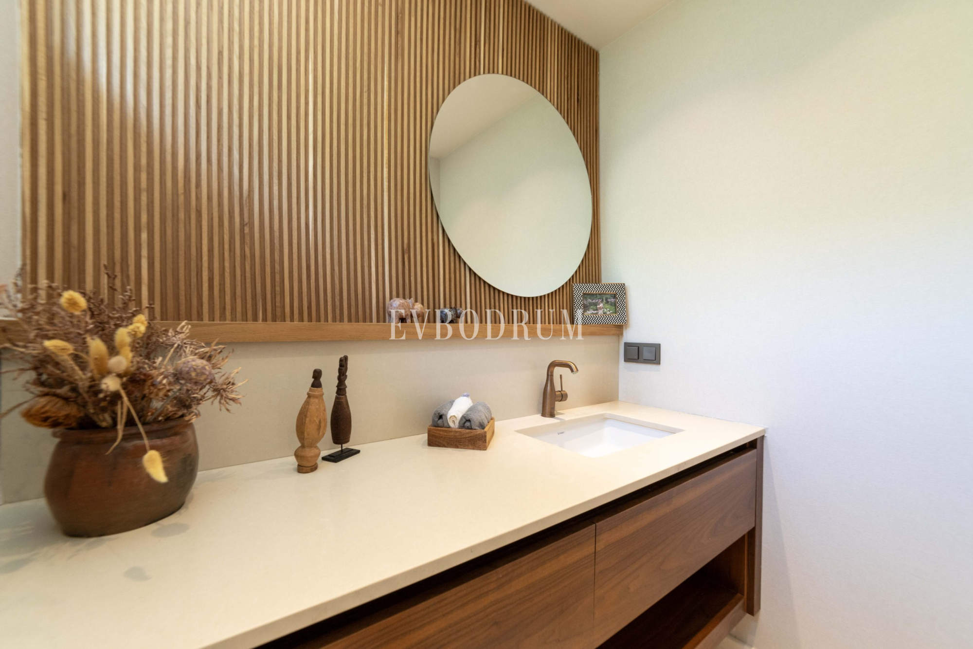 Ahşap parke zeminler, yerden ısıtma, entegre soğutma sistemi, açık şömine, Bose ses sistemi ve 4K ev sinema sistemi bulunmaktadır.
