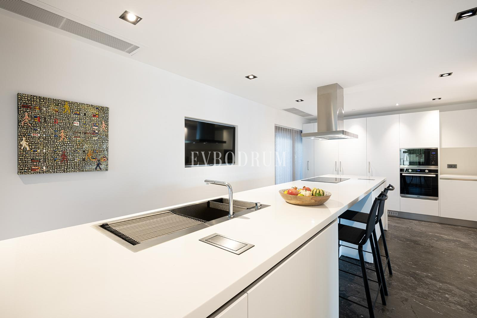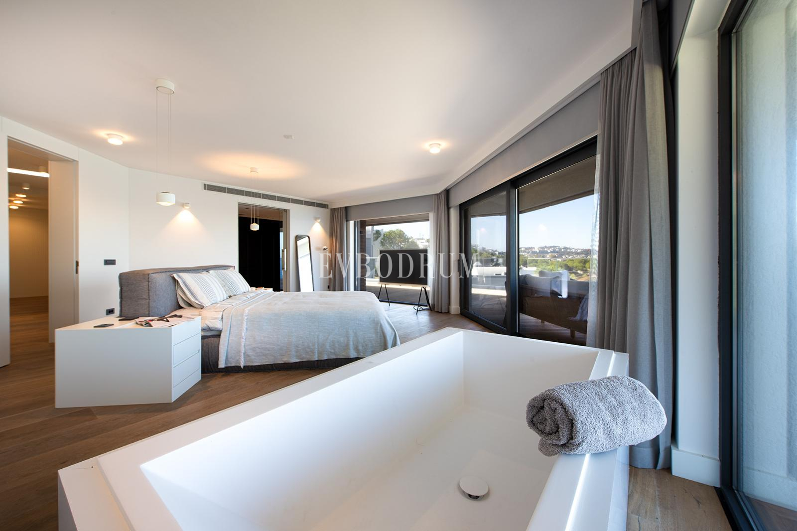 Denize tam sıfır konumlanmış olan bu villa, muazzam bir deniz manzarasına sahip. Her sabah, odalarınızdan Yalıkavak koyunun huzur verici manzarasına uyanabilir, akşamları ise gün batımının güzelliklerini izleyebilirsiniz. Evinizin hemen önünde bulunan özel plaj alanı ve iskelesi, denize sıfır bir yaşam sunuyor.