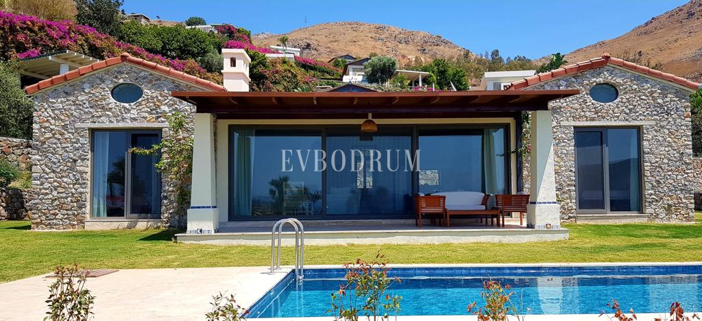 Gümüşlük'te, toplam 6 villalık güvenlikli bir site içinde yer alan bu yeni güzel villa, 2023 yılında yüksek standartlara göre tamamlanmış olup, bir aile için ideal bir tatil evidir.