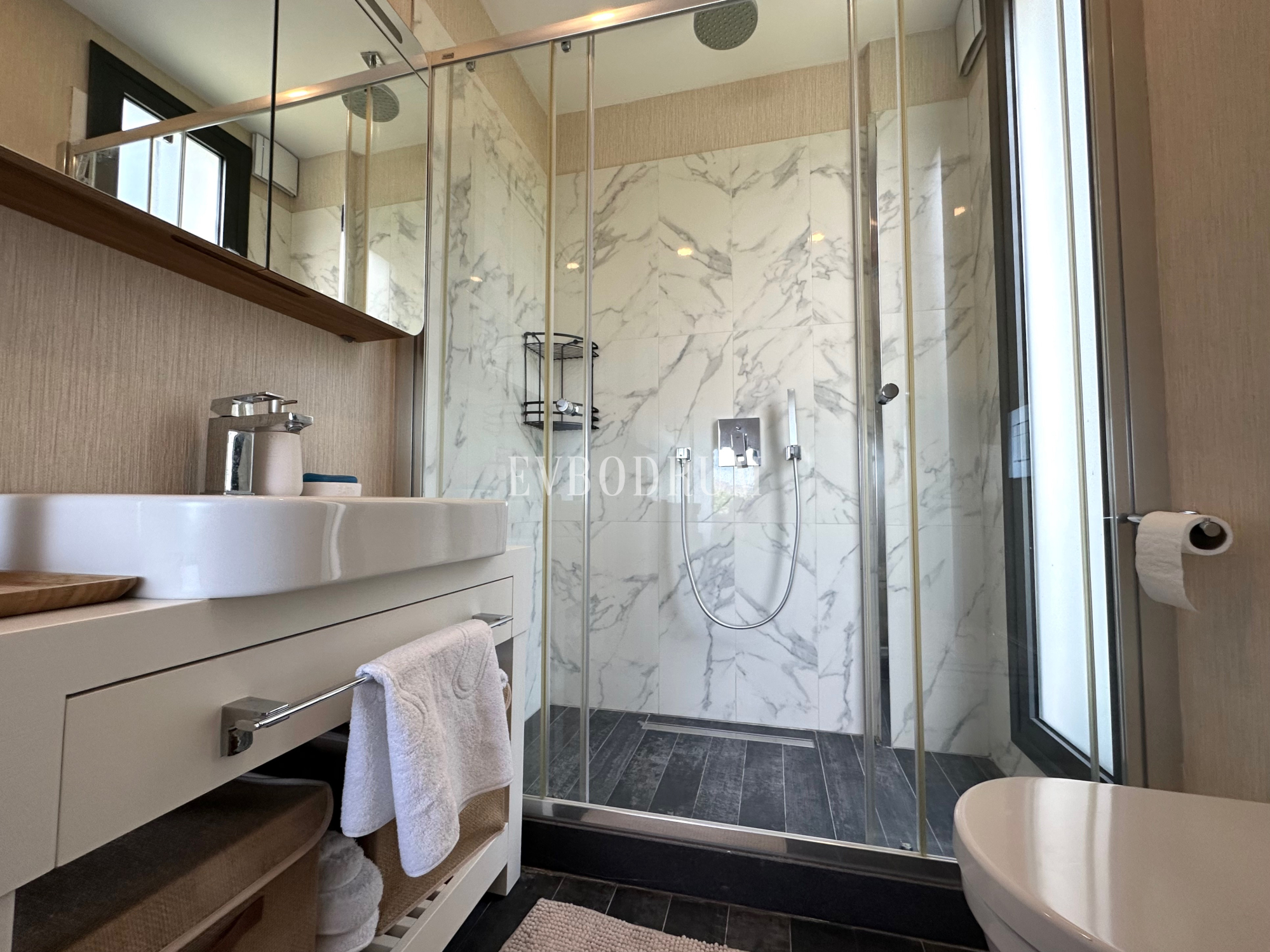 Isı pompalı entegre soğutma / ısıtma sistemi, tüm odalarda sineklikli sürgülü pencereler, oturma alanı ve ebeveyn yatak odasında otomatik panjurlar