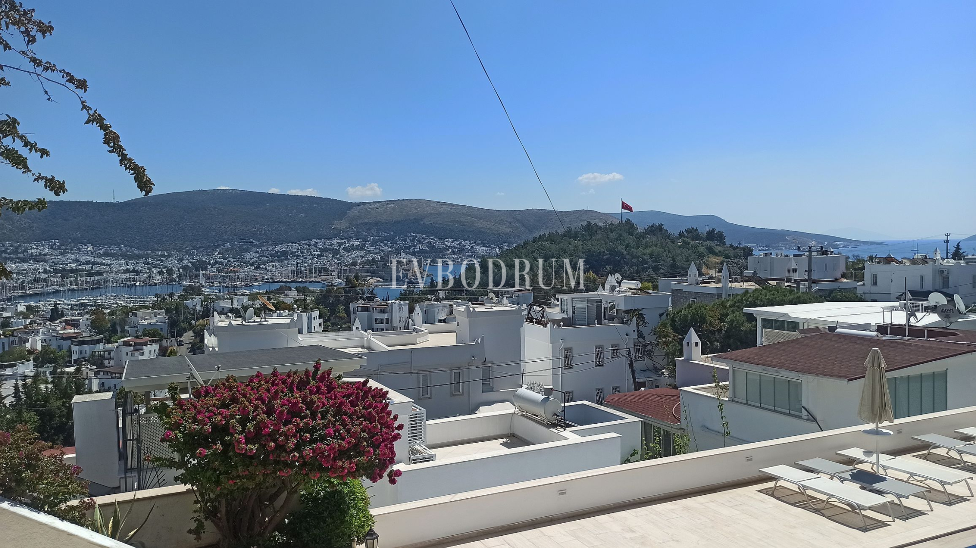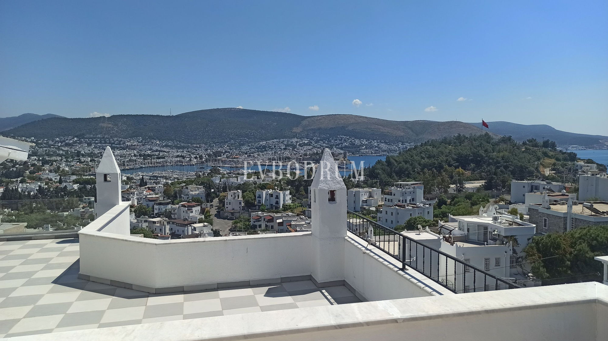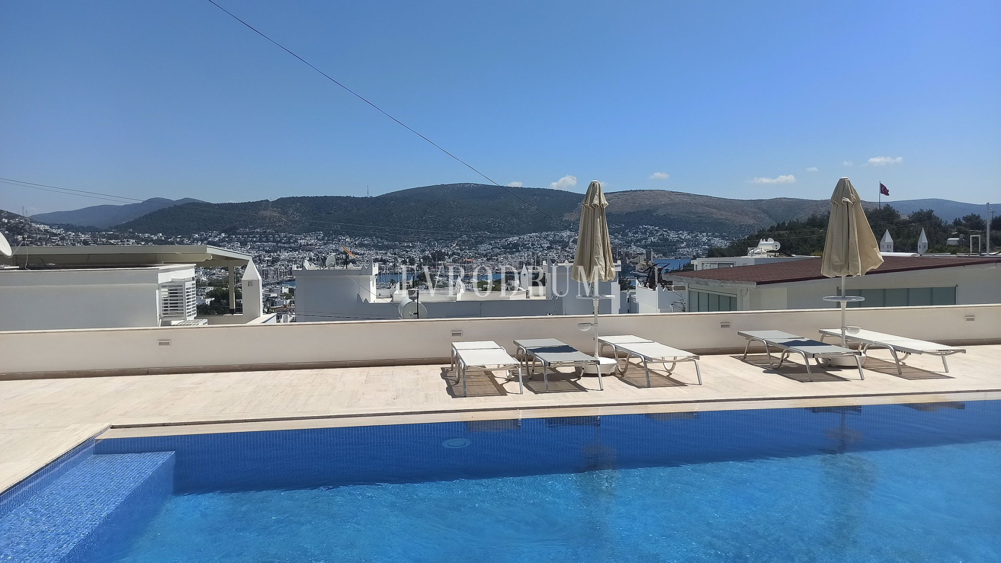 - Bodrum şehir merkezi ve Gümbet koyu manzaralı çatı terası