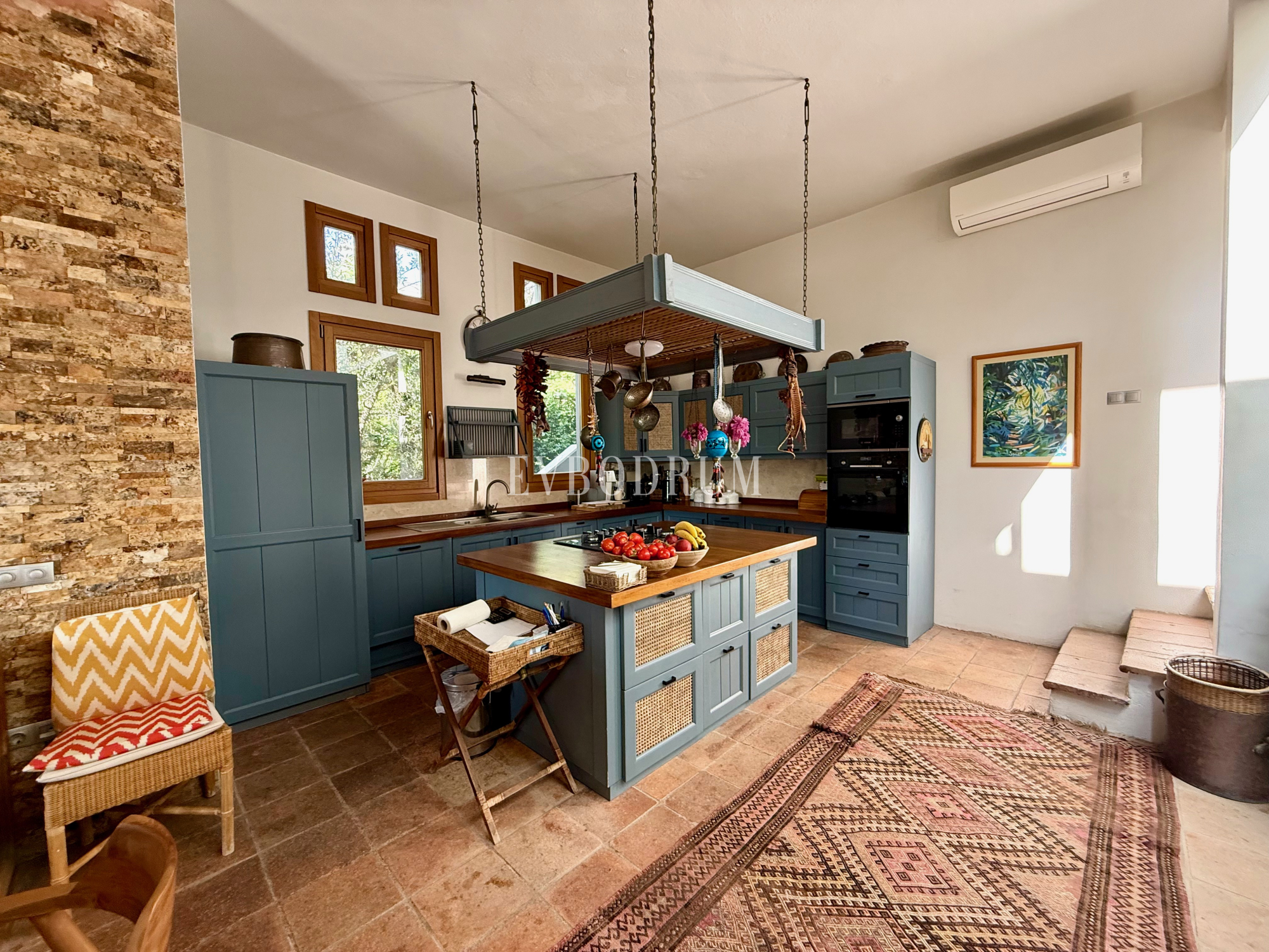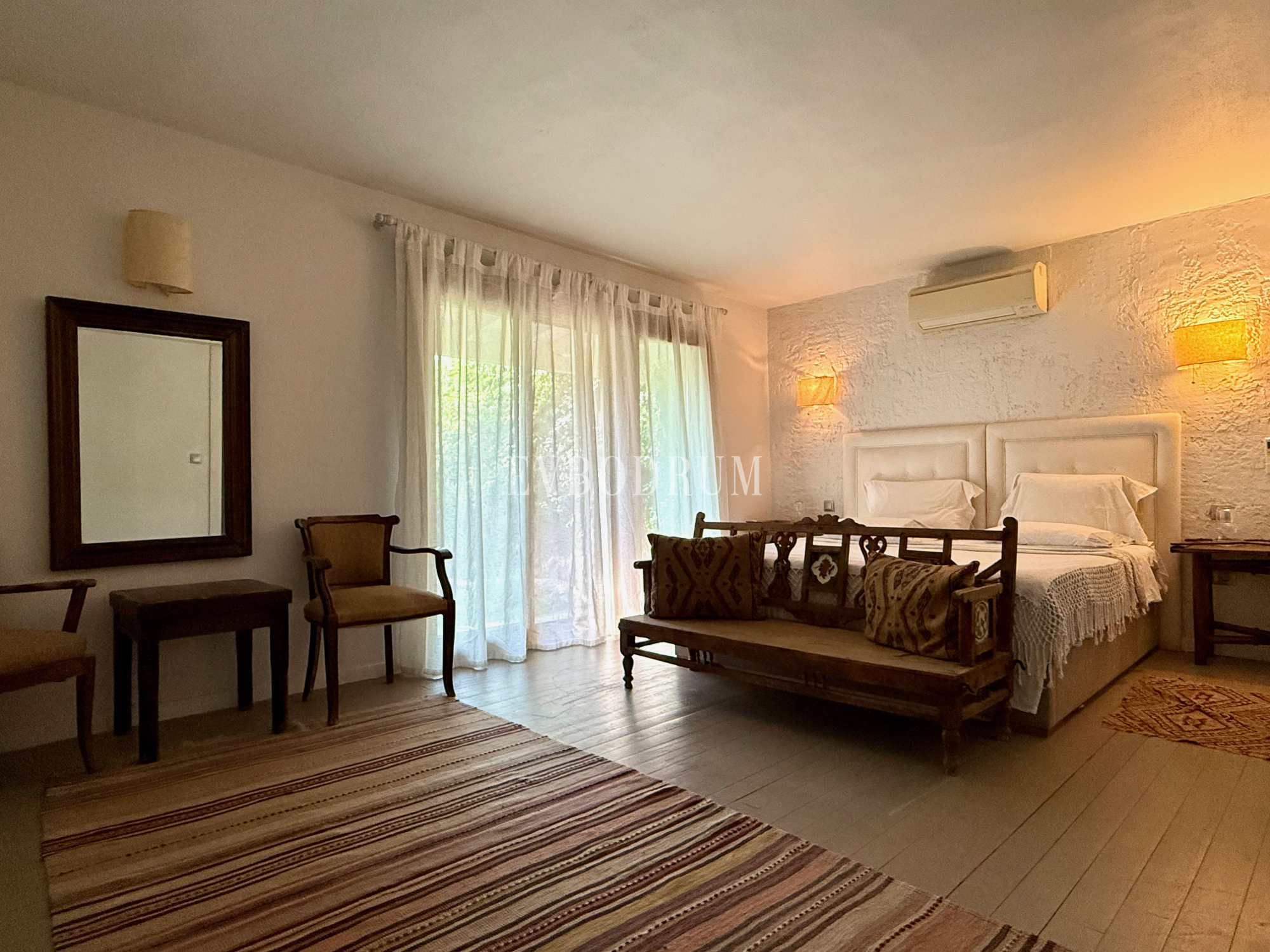 Türkbükü’nün kalbinde yer alan bu geniş mülk, 1.600 m²’lik özel ve güvenlikli bir arsa içerisinde bulunmakta olup, kum plajlara, restoranlara ve alışveriş noktalarına sadece 7 dakikalık yürüme mesafesindedir.