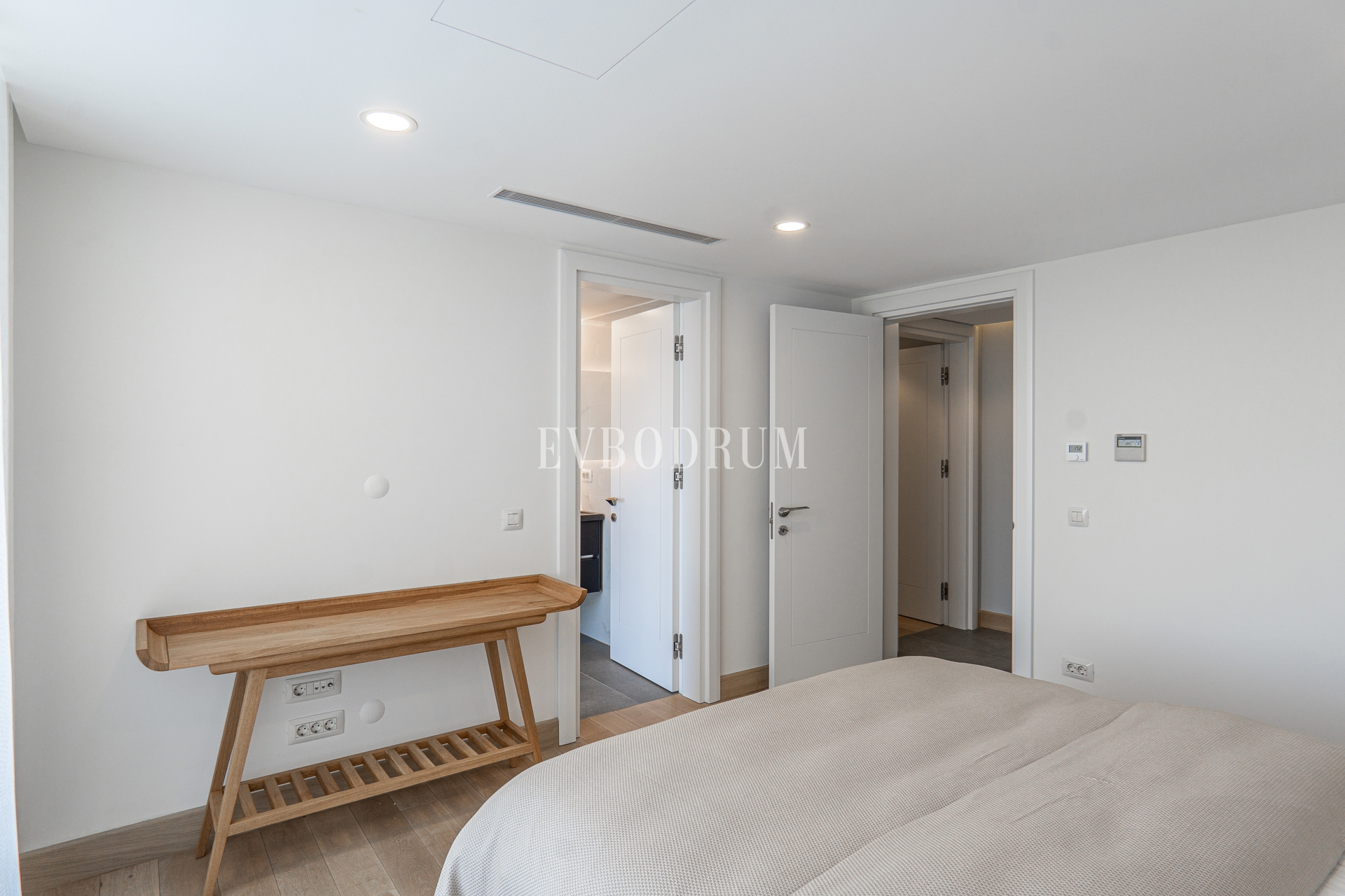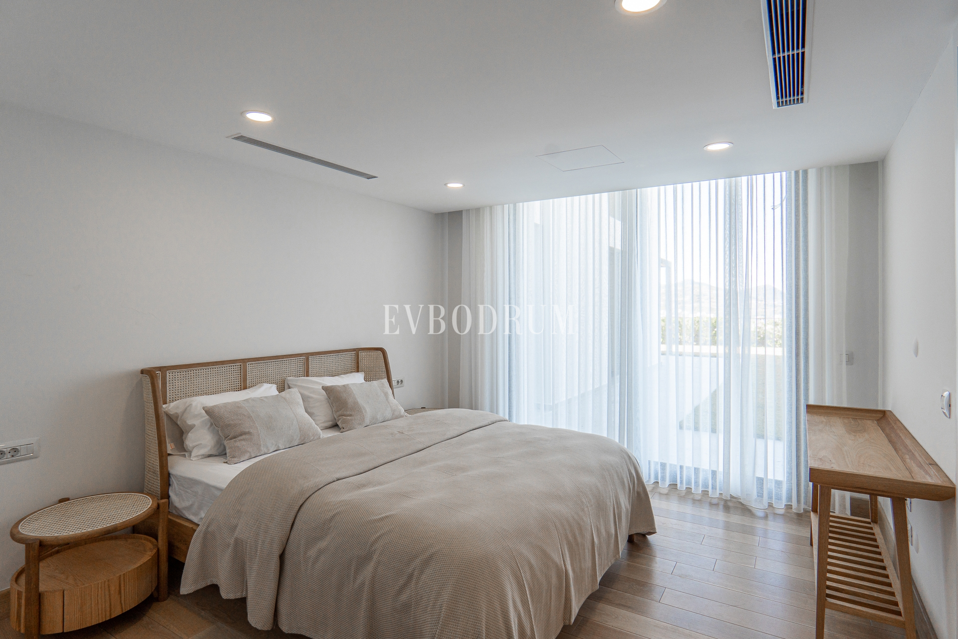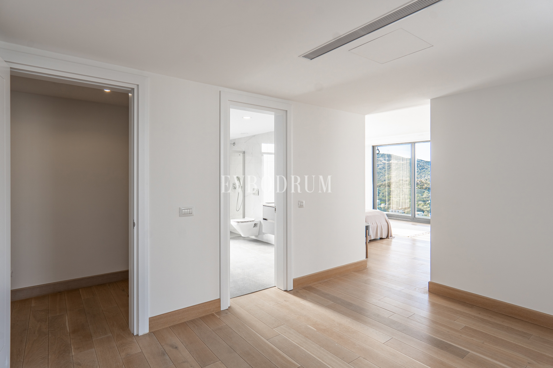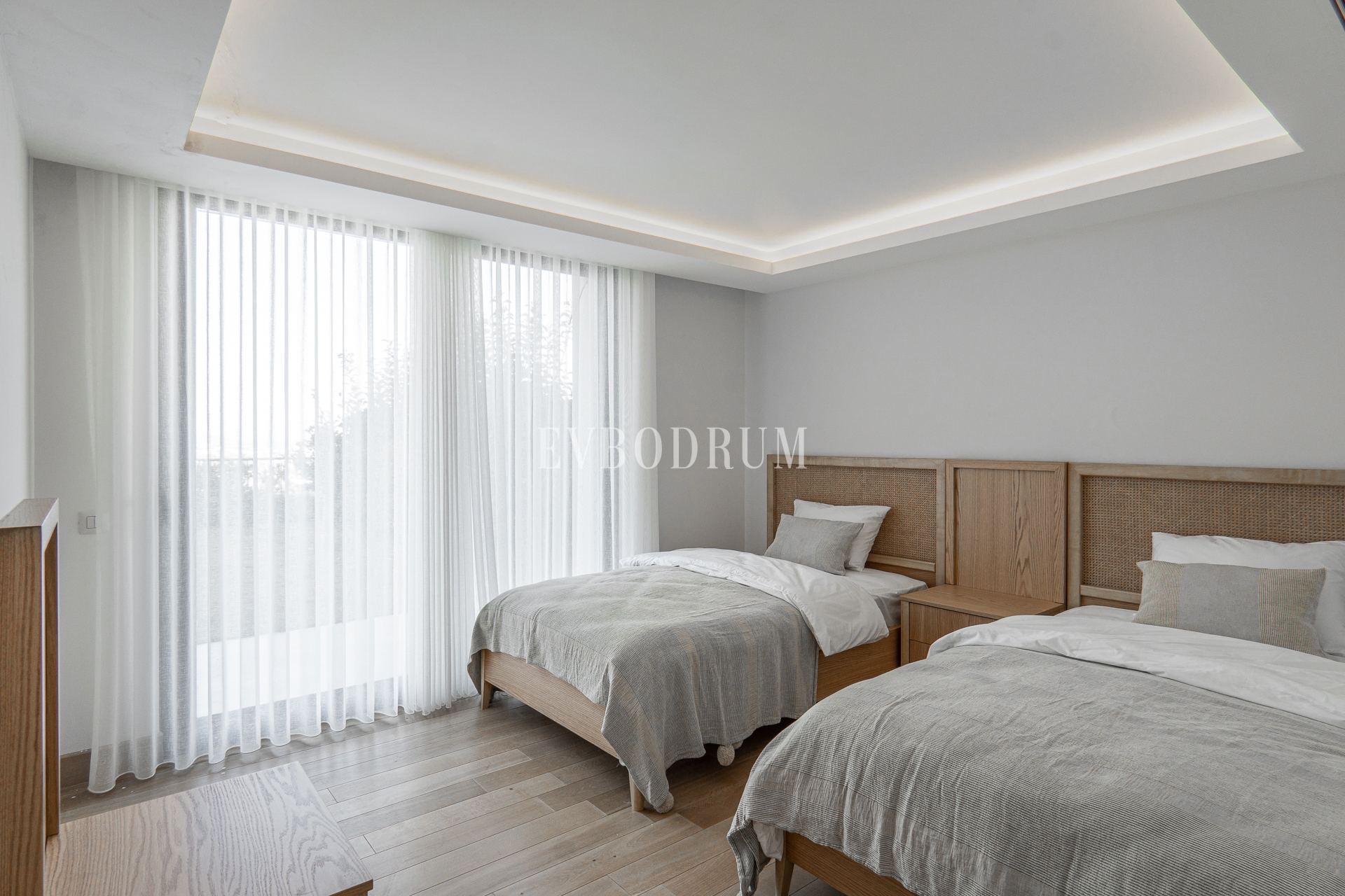 Birinci katta, biri giyinme odalı olmak üzere 2 geniş yatak odası var. Her iki yatak odası da kendi özel teraslarından Yalıkavak manzarasına hakim konumda.