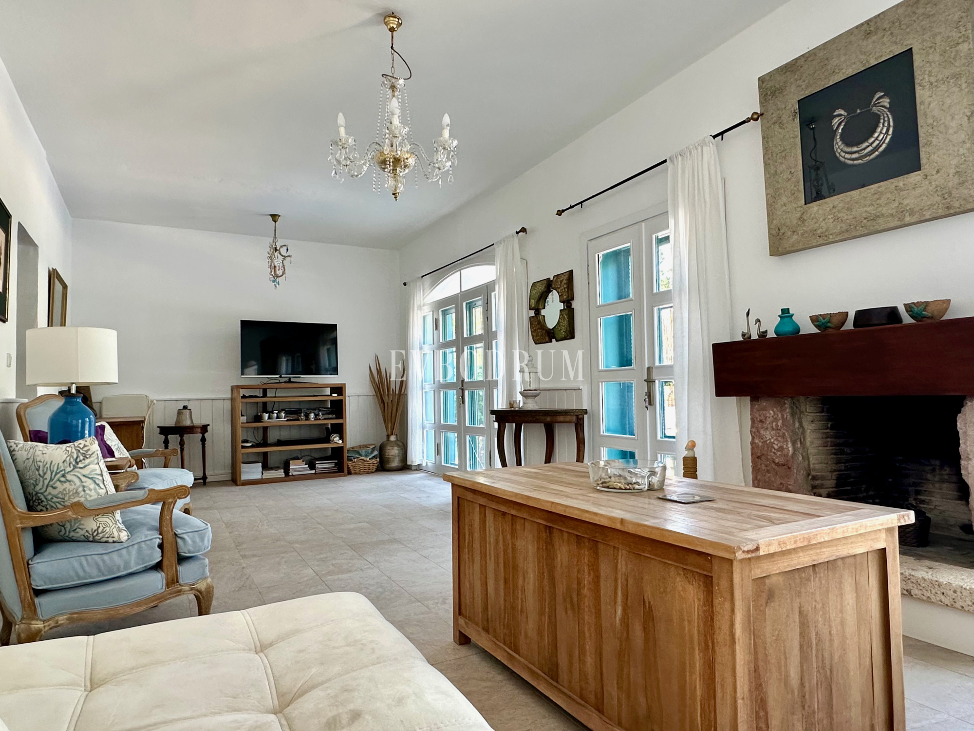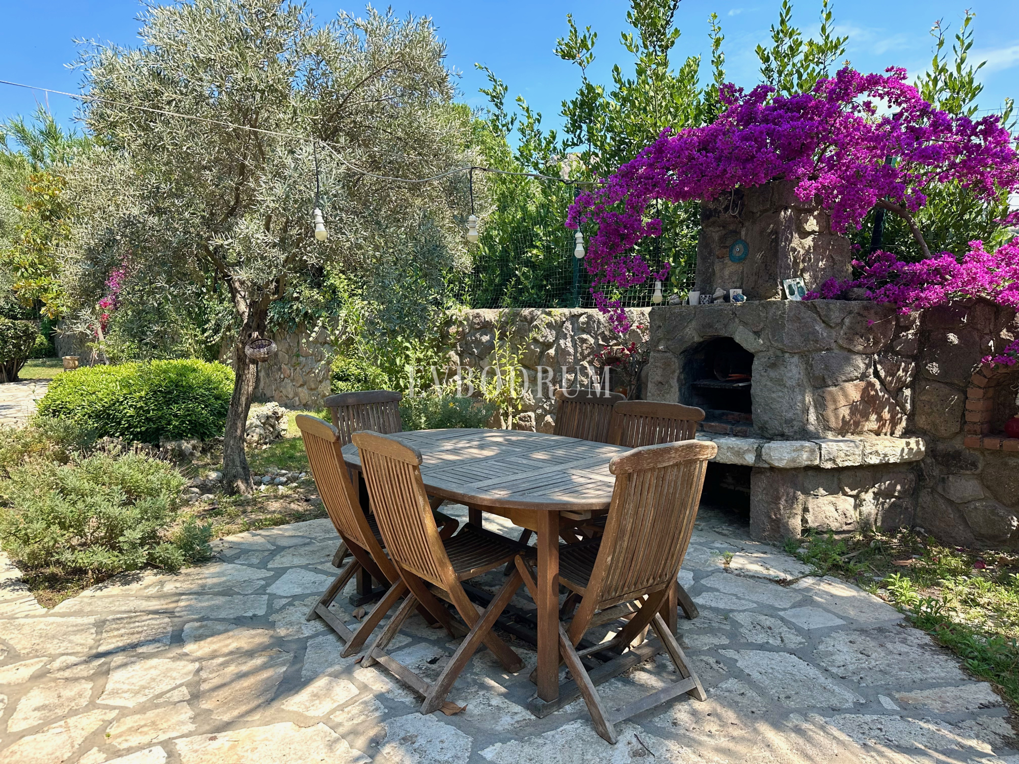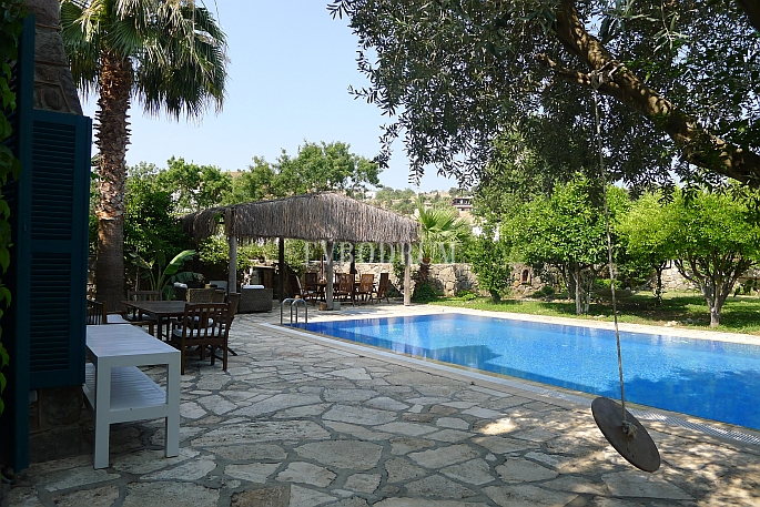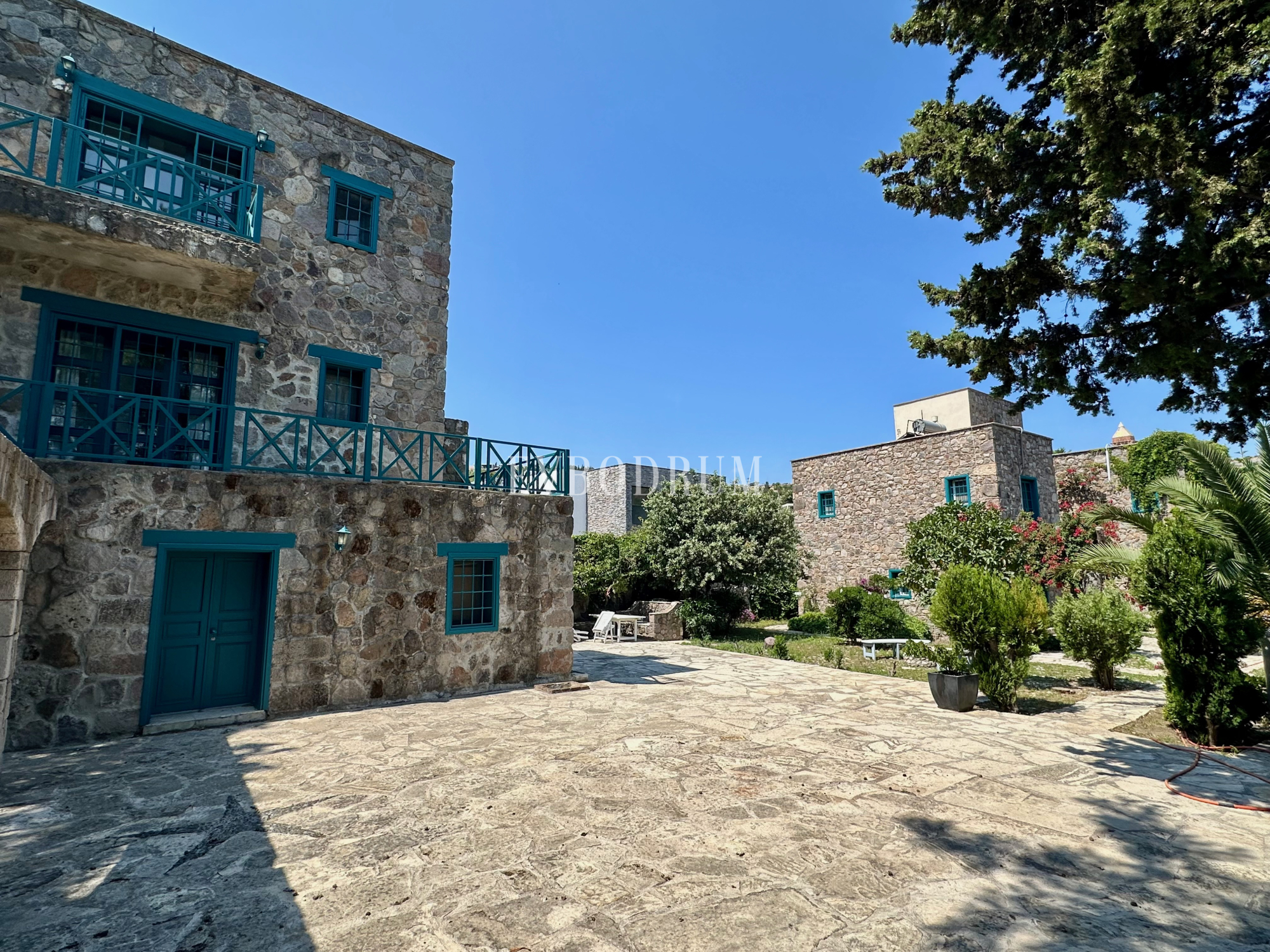 Ayrı bir konuk evine sahip bu taş villa, Türkbükü'nün kalbinde, mağazalar, restoranlar ve plajların bulunduğu şehir merkezine sadece kısa bir yürüyüş mesafesinde, toplam 2.000 m²'lik güzel bir mandalina bahçesinde yer almaktadır.