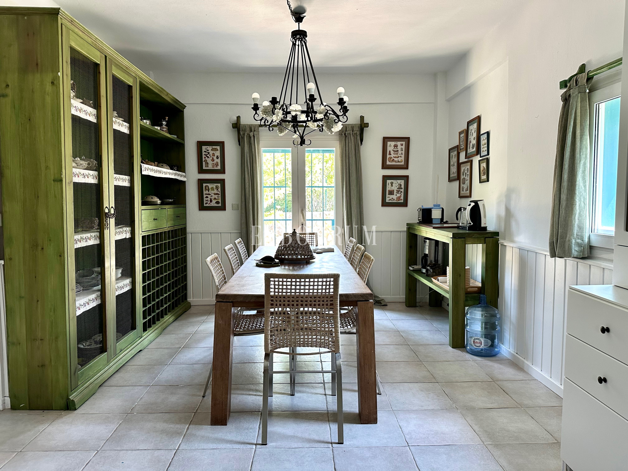 Yemek alanı bulunan ayrı, çok geniş kır tarzı mutfak