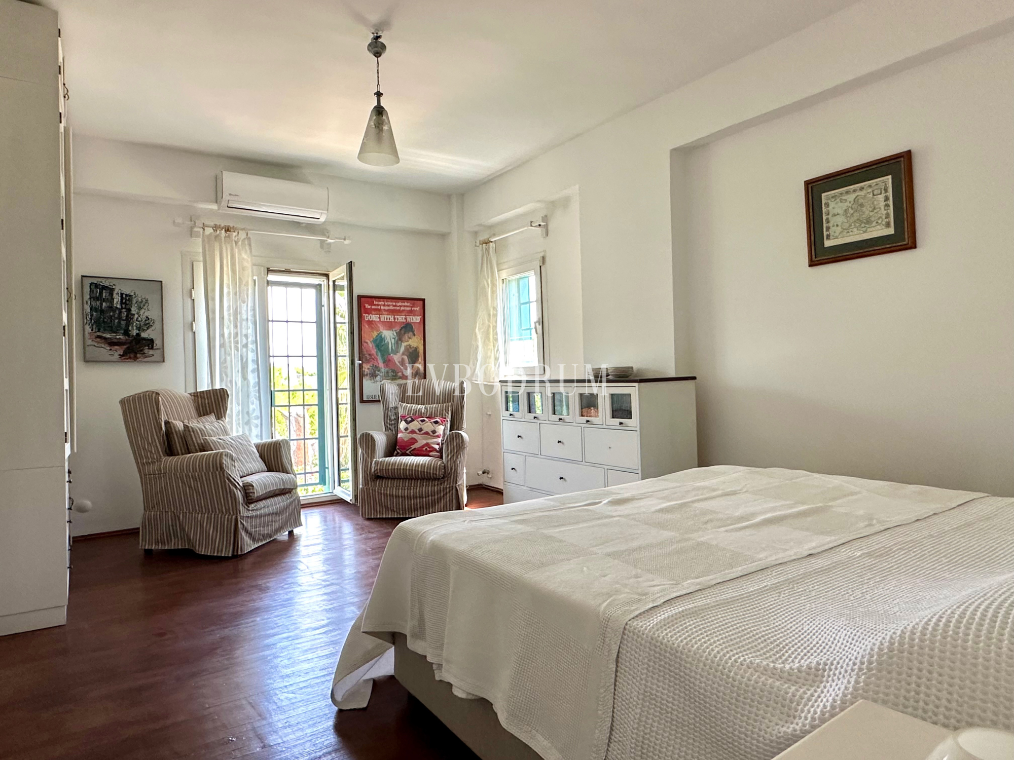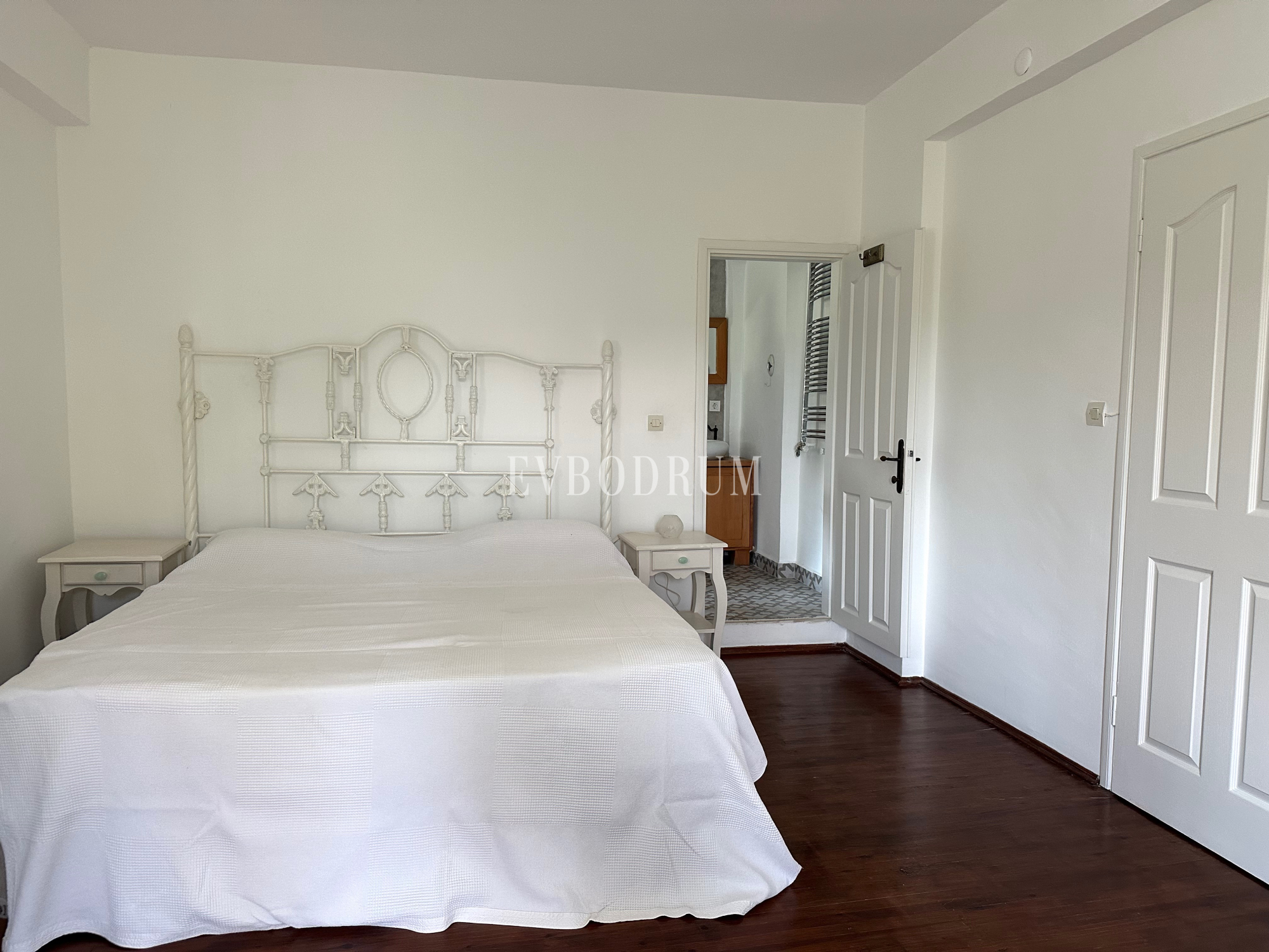 Üst kat: Her biri kendi banyosu ve giyinme odası olan 2 geniş yatak odası