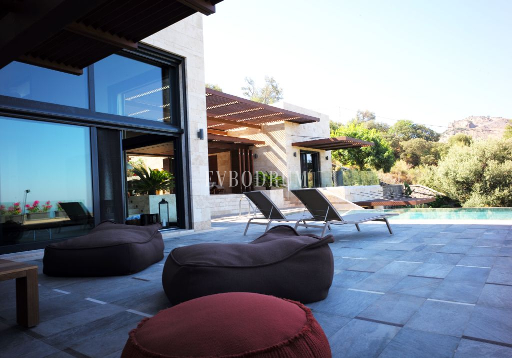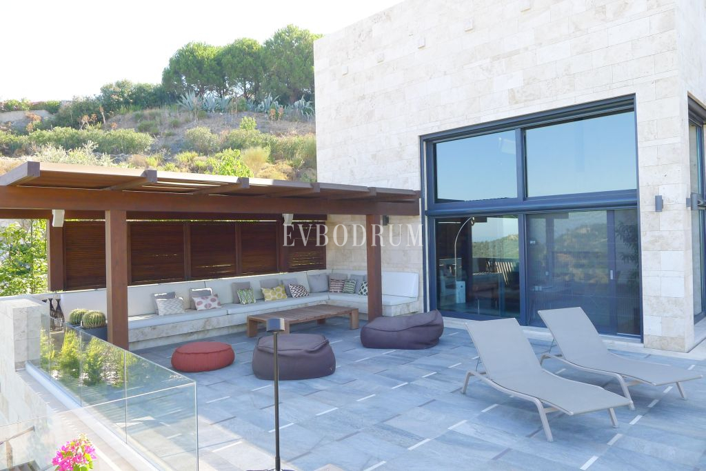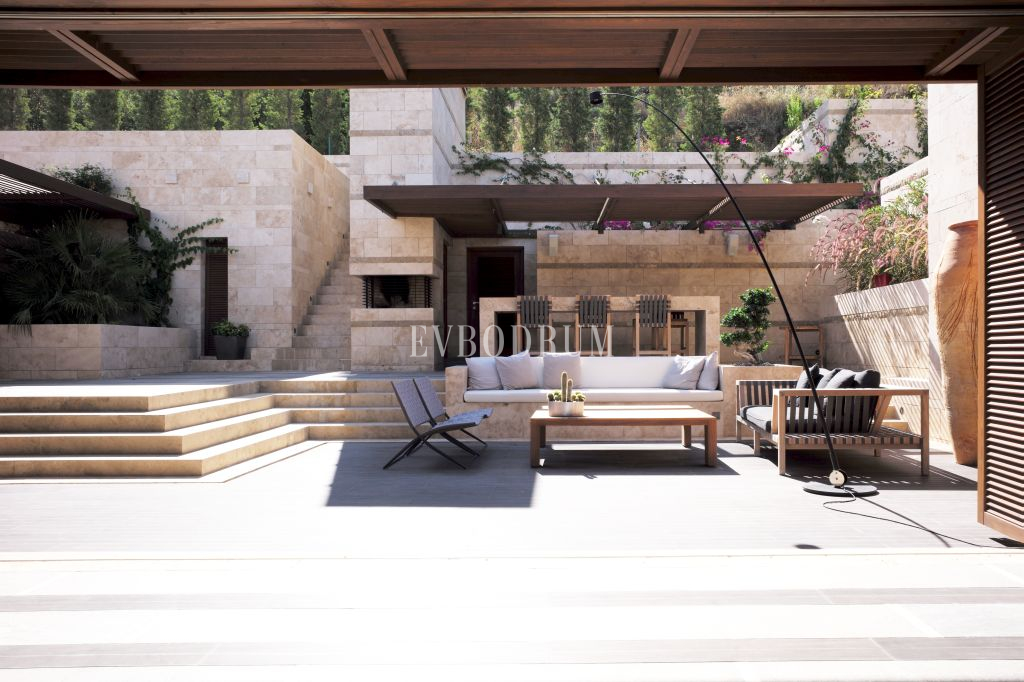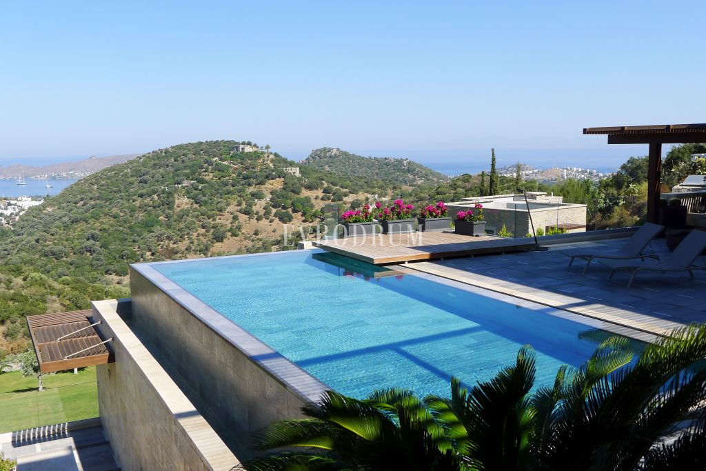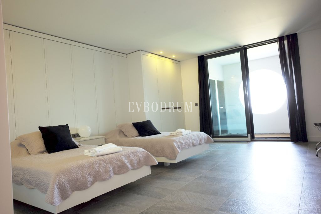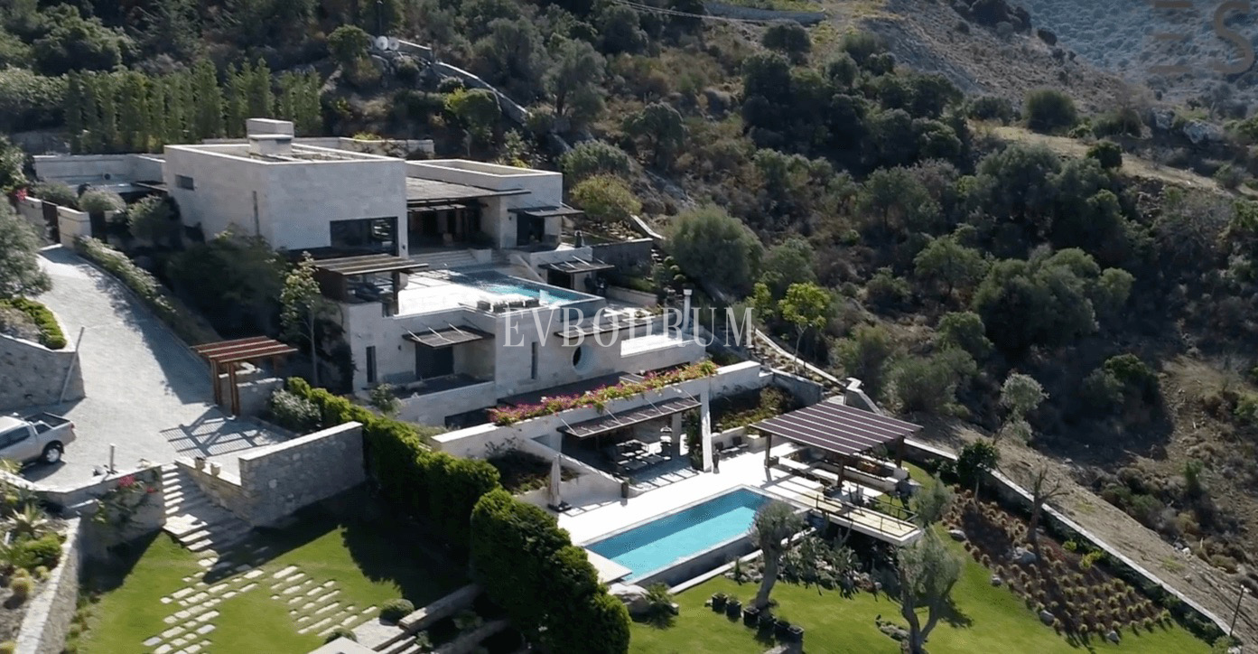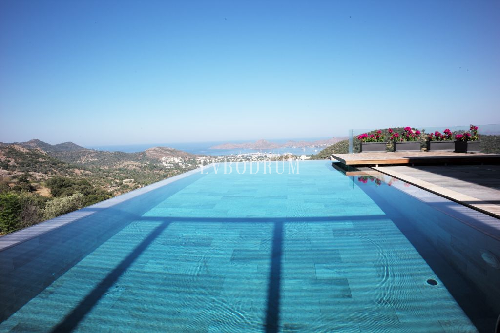 Bu modern ve mimari tasarımlı villa, Yalıkavak’ın sırtlarında yer almaktadır.