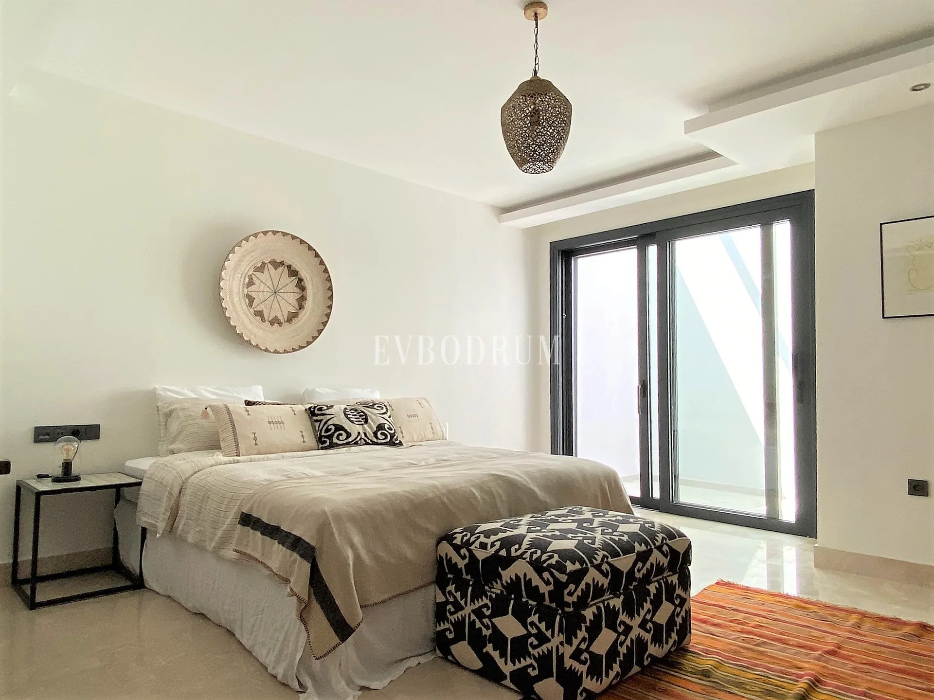 Spa tarzı oldukça geniş bir banyoya ve özel bahçe erişimine sahip ana yatak odası (Master Bedroom).