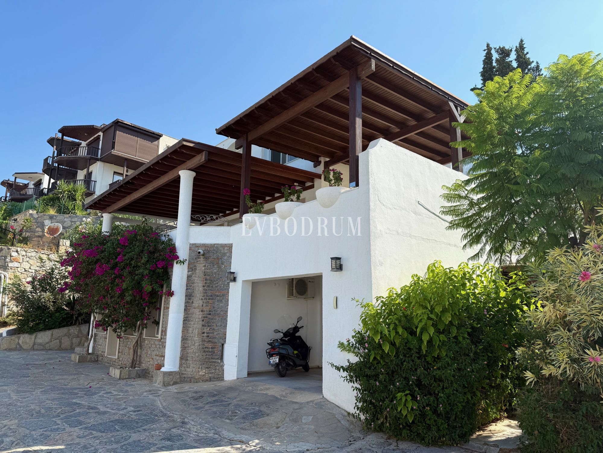 The 2 storey villa is in one of the best locations in Bodrum city center and offers uninterrupted views across Bodrum Bay to St. Peter's Castle and the offshore islands. All shops, restaurants, bars and the sea are within walking distance.