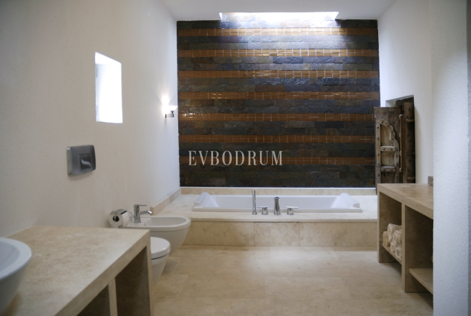 Located in Yalikavak Gokcebel, one of the best residential areas on the Peninsula, this property comprises a large, modern, massive stone villa inspired by an oil factory and with loft concept, with pool, set in its private grounds of 3.000 m2