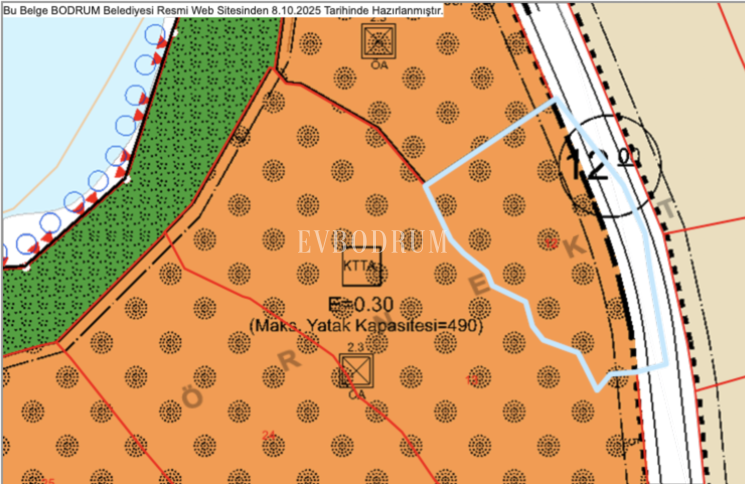 Auf den sanften Hügeln zwischen den Buchten von Türkbükü und Küçükbük gelegen, bietet dieses 2.080 m² große Grundstück eine seltene Gelegenheit in einer der prestigeträchtigsten Küstendestinationen von Bodrum. Das Grundstück verfügt über eine 30 % Tourismus-Bebauungsgenehmigung, die Flexibilität für die Entwicklung eines Boutique-Hotels, luxuriöser Villen oder eines exklusiven Hospitality-Konzepts mit Panoramablick auf das Meer und unmittelbarer Nähe zur türkisfarbenen Küste ermöglicht.
