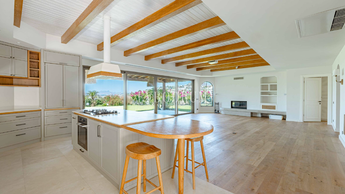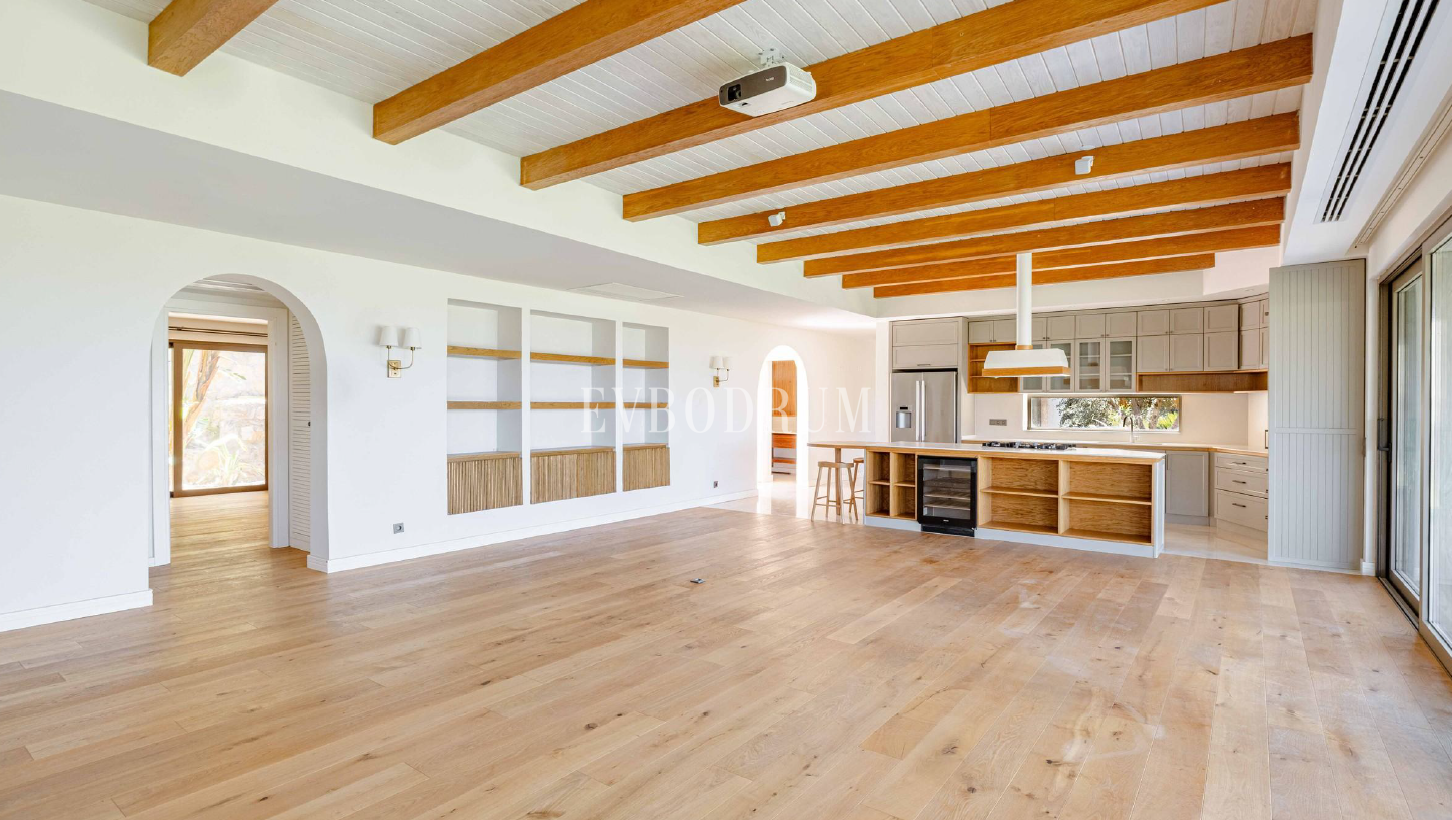 • Zeminden tavana uzanan pencerelere sahip, manzarayı kucaklayan çok geniş bir oturma odası; gölgeli, büyük terasa açılmaktadır
