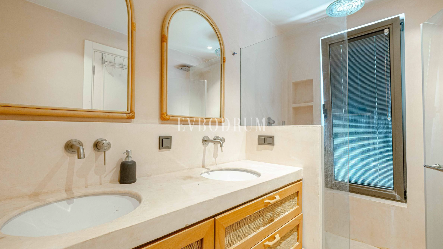Bu mülk, Bodrum’da bir tepe üzerinde konumlanmış, merkezi ve Bodrum Koyu'nu gören güzel bir sitede yer almaktadır.