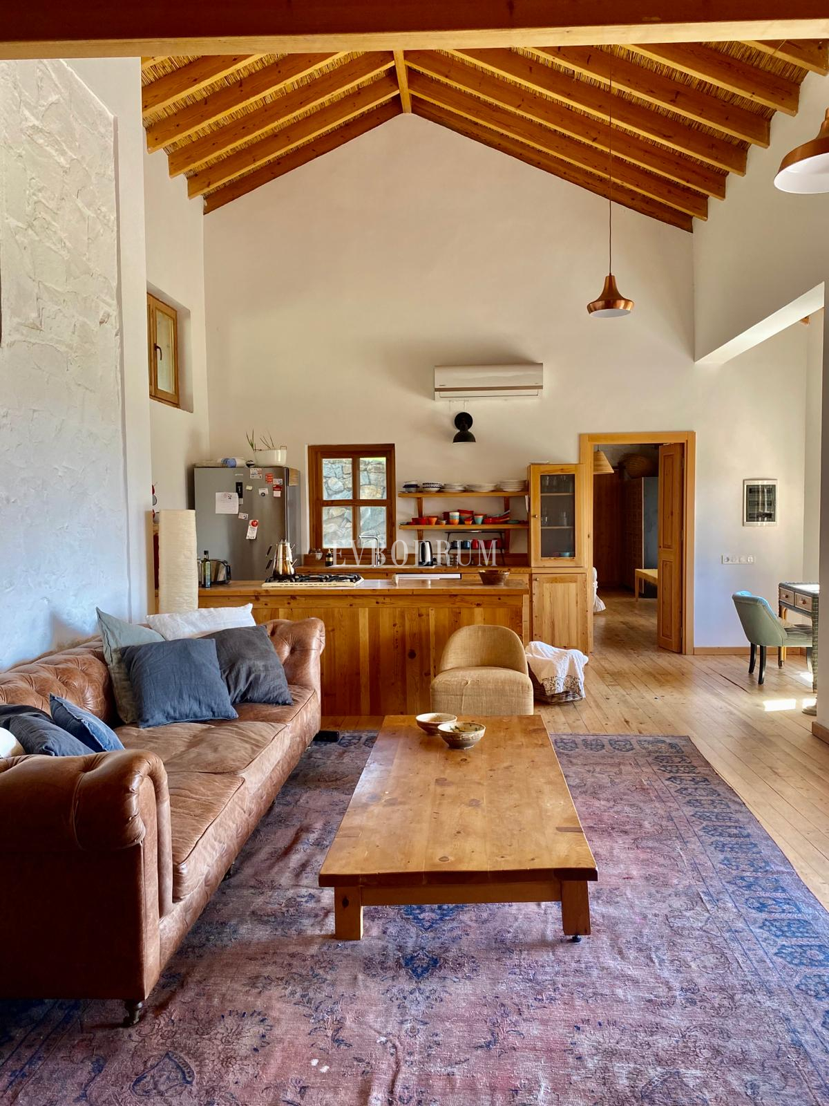 This beautiful stone house; offers a pleasant life with its high ceilings, stone walls, wooden flooring, fireplace and large garden. It is located in a site (cooperative) of 5 houses consisting of independent sections.