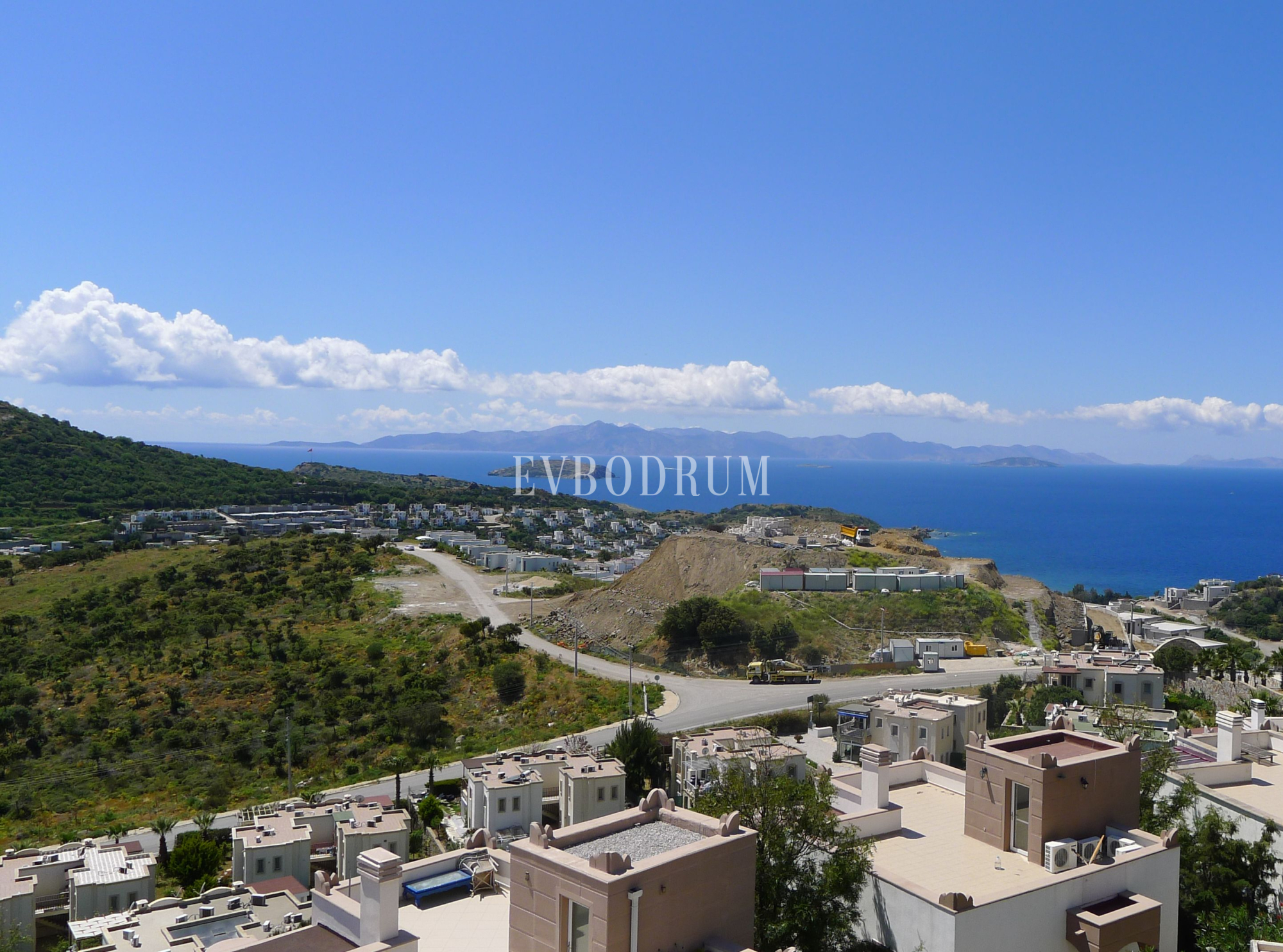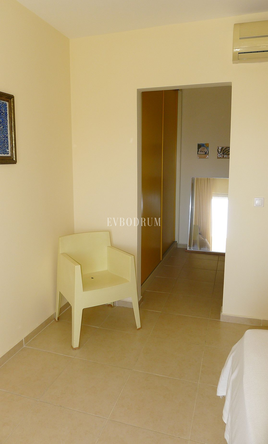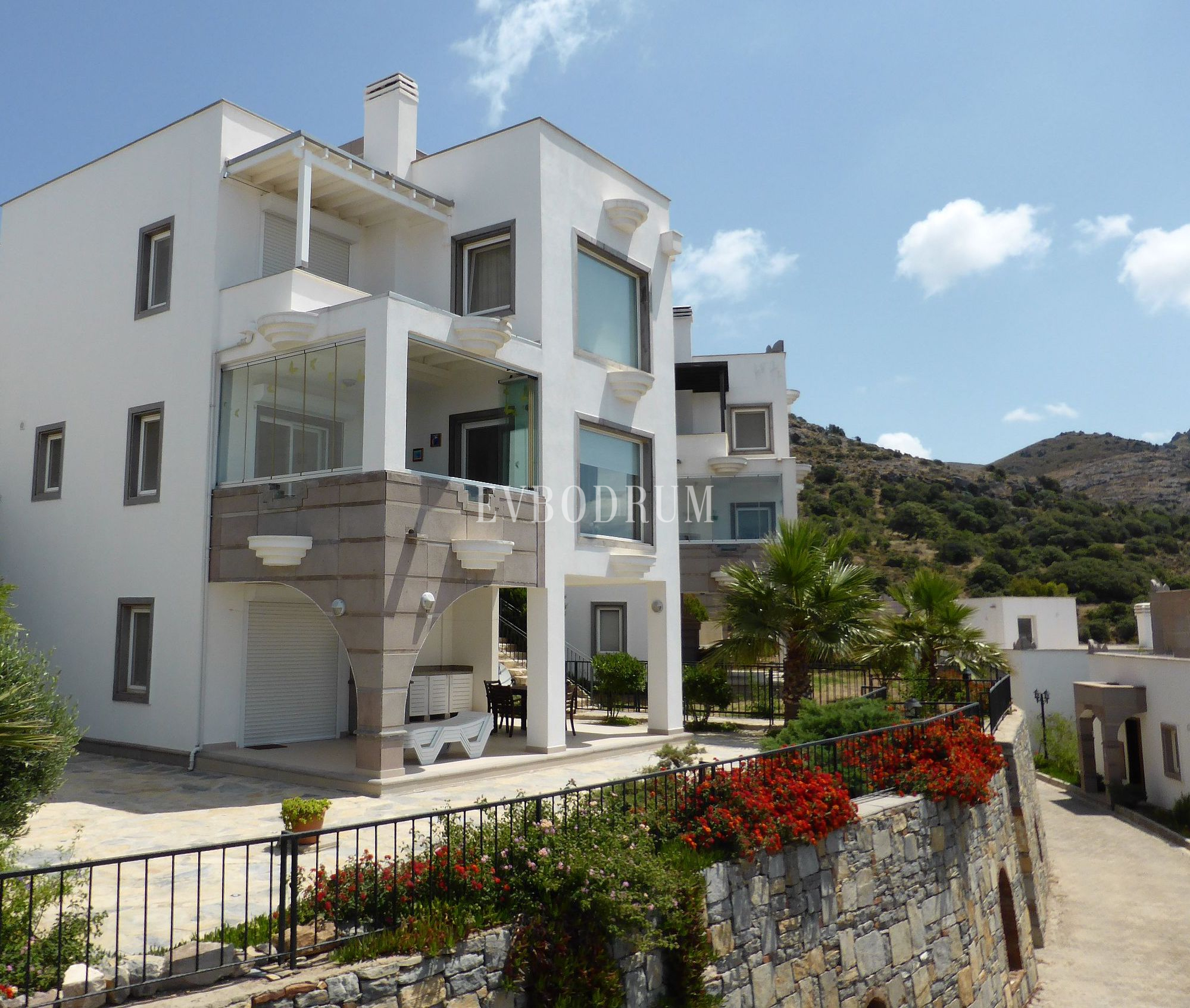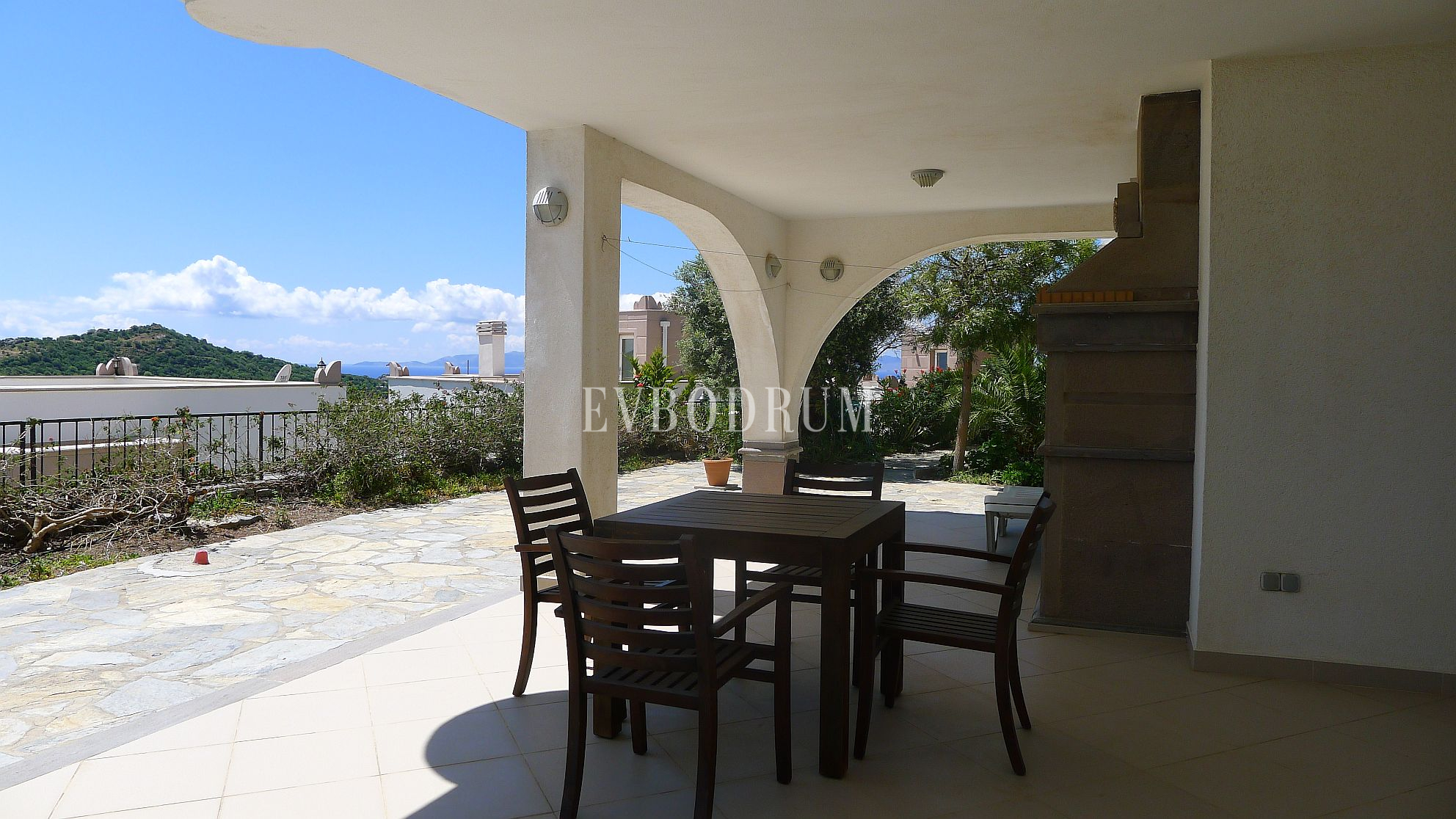 Das dreistöckige gepflegte Einfamilienhaus mit Dachterrasse mit wunderschönem Meerblick - auch auf die griechischen Inseln Kos, Kalymnos und Leros, befindet sich auf einer gepflegten Anlage in Gümüşlük.