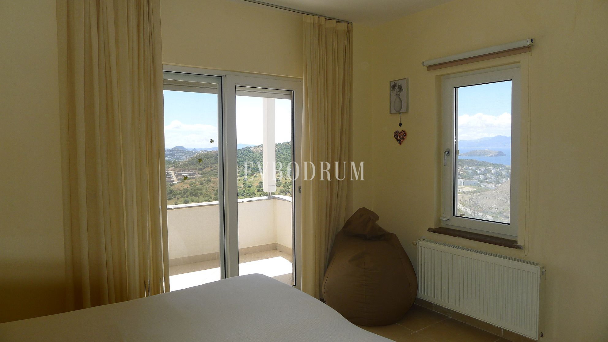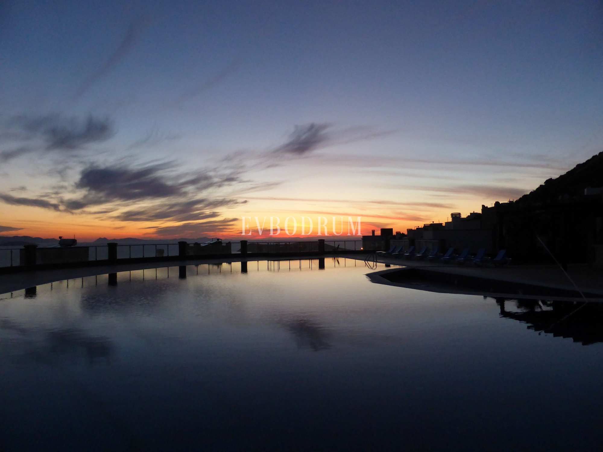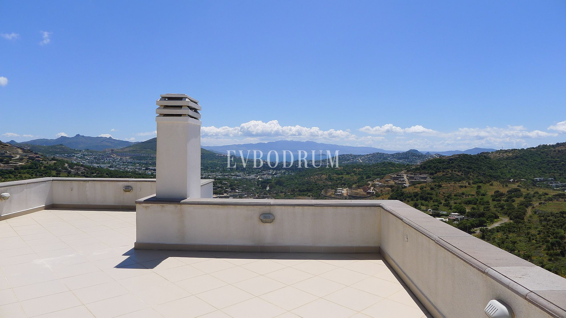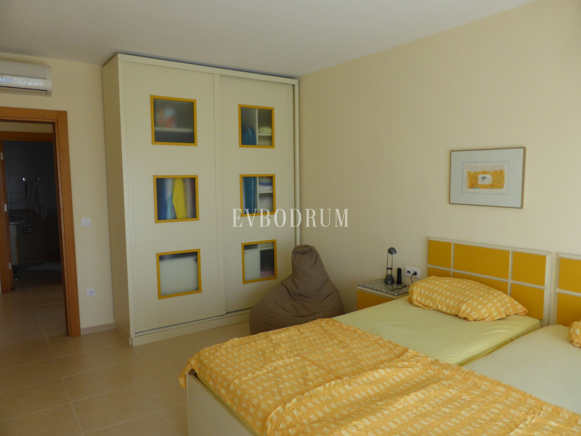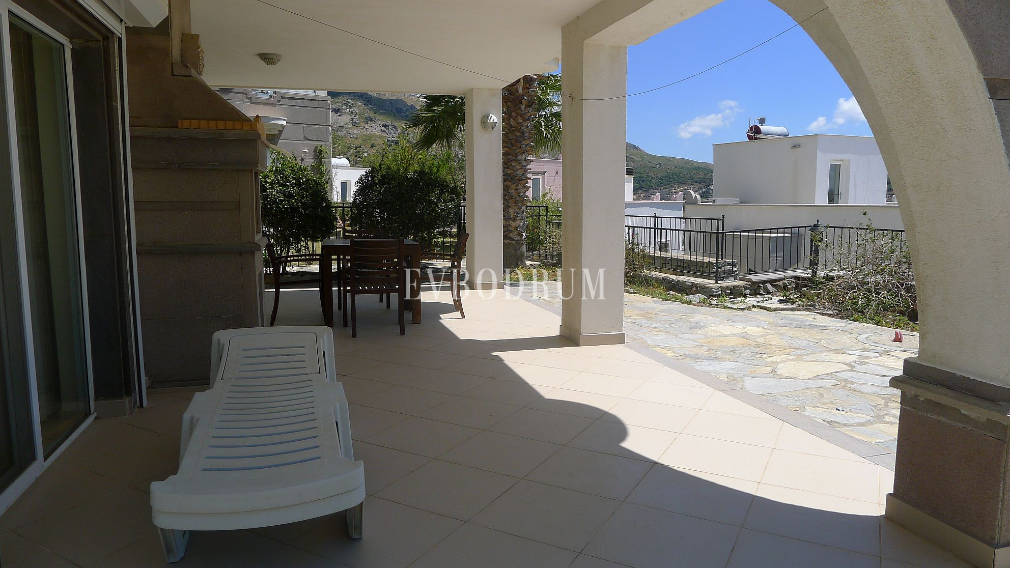 Das dreistöckige gepflegte Einfamilienhaus mit Dachterrasse mit wunderschönem Meerblick - auch auf die griechischen Inseln Kos, Kalymnos und Leros, befindet sich auf einer gepflegten Anlage in Gümüşlük.