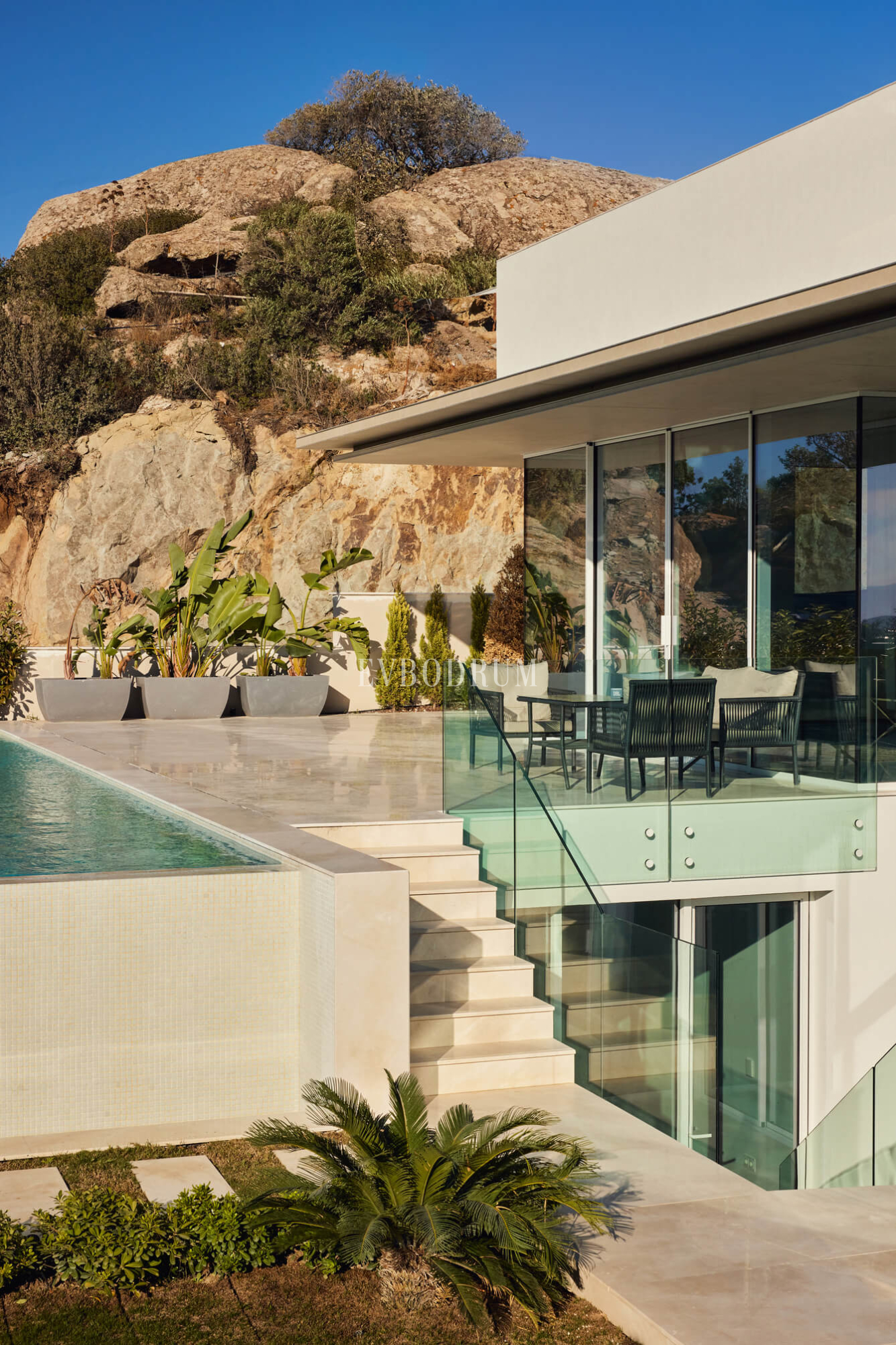 10.700m² alana kurulu, tüm alanlarla 600m² büyüklükte 12 adet çok özel villa. Yunan adalarına bir seyir mesafesinde olan, yarımadanın her yerine merkezi konumda bulunan, dünyada trendi yakalamış tüm markalara ev sahipliği yapan Yalıkavak Marina, Tilkicik ve Gökçebel koylarına tepeden bakan manzarası, akıllı ev sistemiyle donatılmış, her eve özel 70m² yüzme havuzu ve bahçesiyle tam bir konfor alanı.