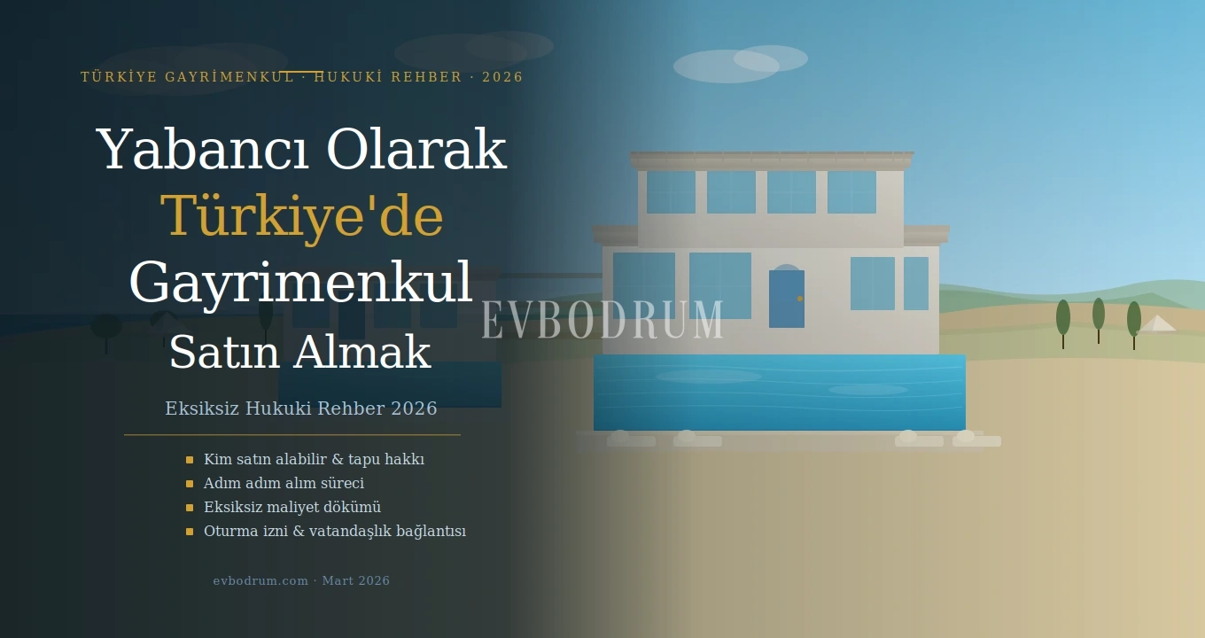 Bu makale yalnızca bilgilendirme amaçlıdır; hukuki, vergisel veya mali tavsiye niteliği taşımamaktadır. Kurallar ve oranlar Mart 2026 itibarıyla belirtilmiş olup değişebilir. Evbodrum.com lisanslı bir Türk emlak acentesidir. Türkiye’de herhangi bir gayrimenkul alımı yapmadan önce her zaman nitelikli hukuki ve vergi danışmanlığı alın.